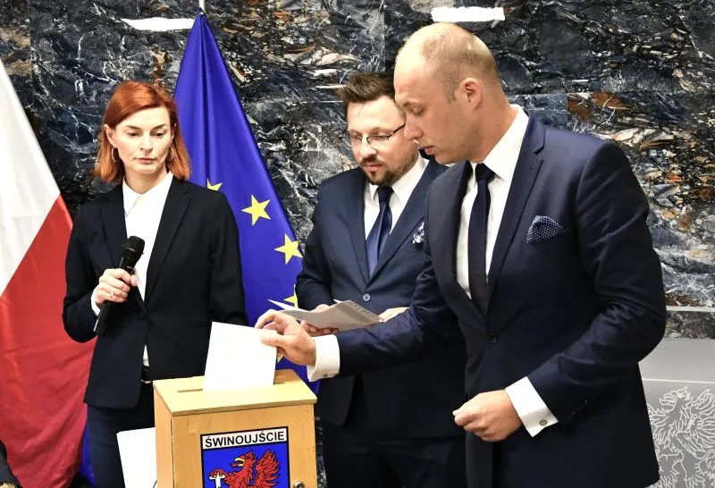 Przysięga złożona przez 21 radnych, wybór przewodniczącego i ślubowanie nowej Prezydent Miasta Świnoujście złożyły się na program pierwszej sesji Rady Miasta Świnoujście IX kadencji.
