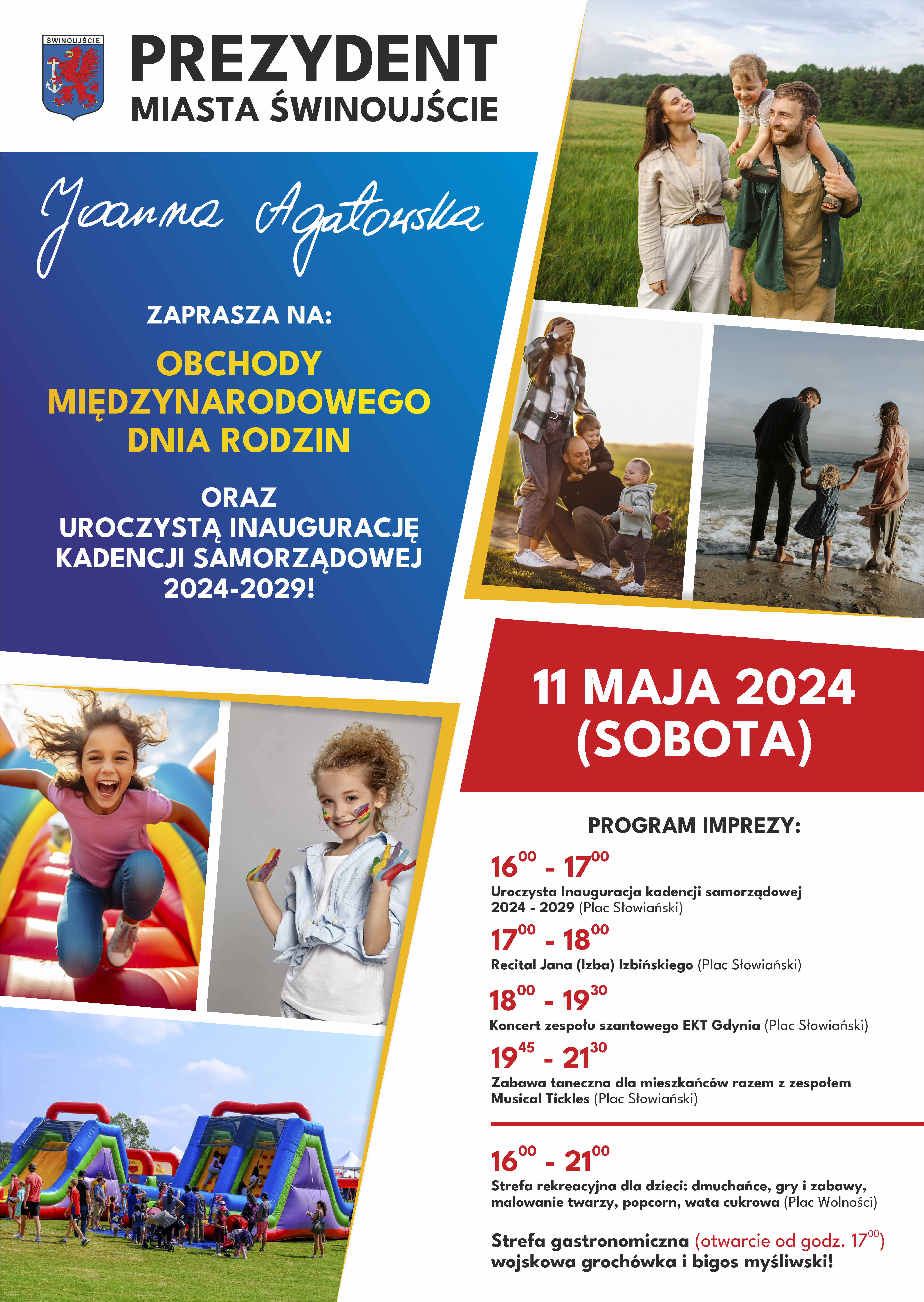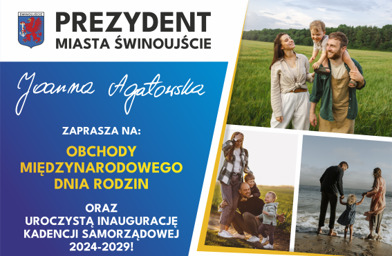 W imieniu Prezydenta Miasta Świnoujście Joanny Agatowskiej, serdecznie zapraszamy na uroczystą inaugurację kadencji samorządowej 2024-2029 oraz obchody Międzynarodowego Dnia Rodziny w sobotę, 11 maja o godzinie 16.00 na pl. Słowiańskim oraz pl. Wolności.