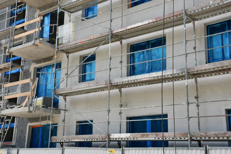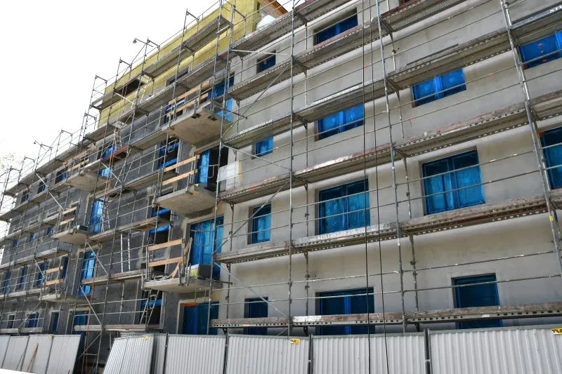 Mieszkania komunalne. Jeden budynek jest już prawie w stanie zamkniętym.