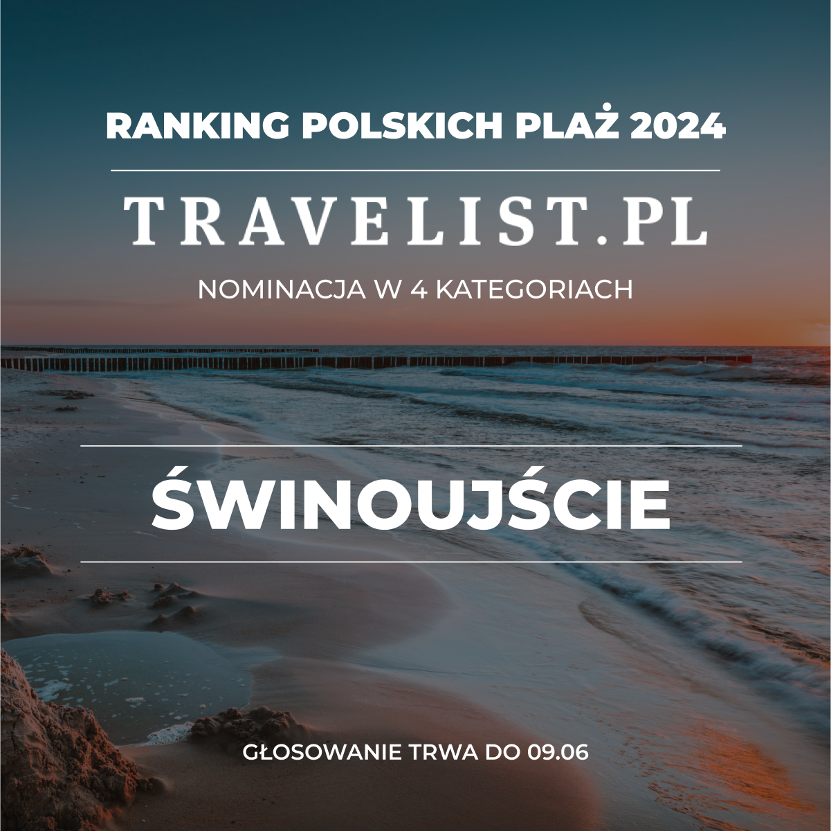 Świnoujście otrzymało nominacje w Rankingu Plaż 2024 portalu rezerwacyjnego Travelist.pl. Ma szansę na wygraną aż w czterech kategoriach: Plaża Roku, INSTA Plaża, Najlepsza plaża dla aktywnych oraz Najbardziej imprezowa plaża!