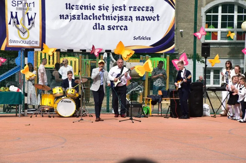 W tym roku miejskie obchody zakończenia roku szkolnego zostały zorganizowane na boisku Szkoły Podstawowej nr 1 w Świnoujściu przy ulicy Narutowicza 10.