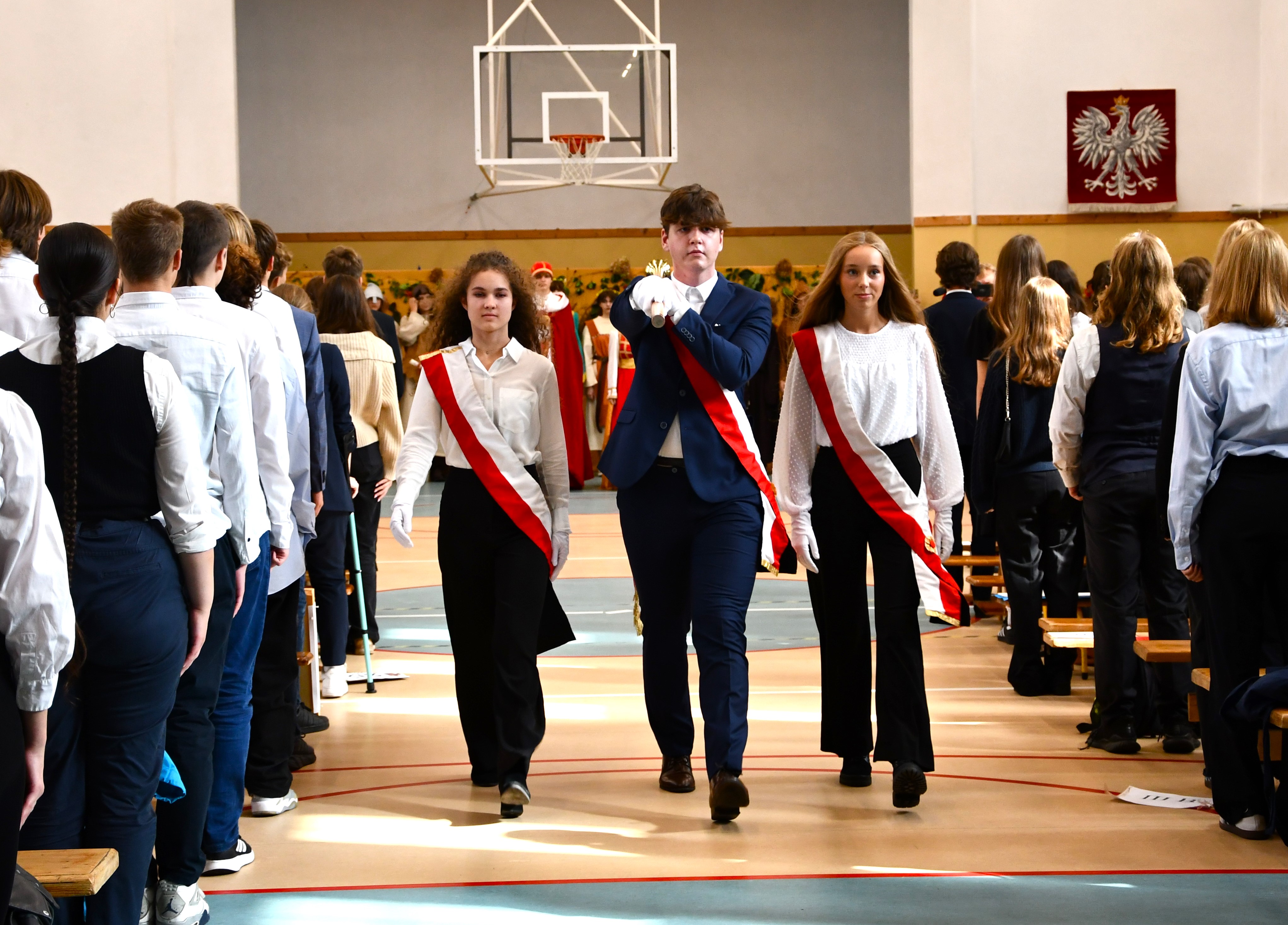 Kolejne części świętowania odbyły się w sali gimnastycznej. Prezydent Świnoujścia Joanna Agatowska życzyła uczniom i gronu pedagogicznemu wielu sukcesów, a pierwsze roczniki złożyły uroczyste ślubowanie i stały się pełnoprawnymi członkami szkolnej społeczności. W części artystycznej nie zabrakło wspomnień z polskiej przeszłości. Ten dzień na pewno przejdzie do historii.
