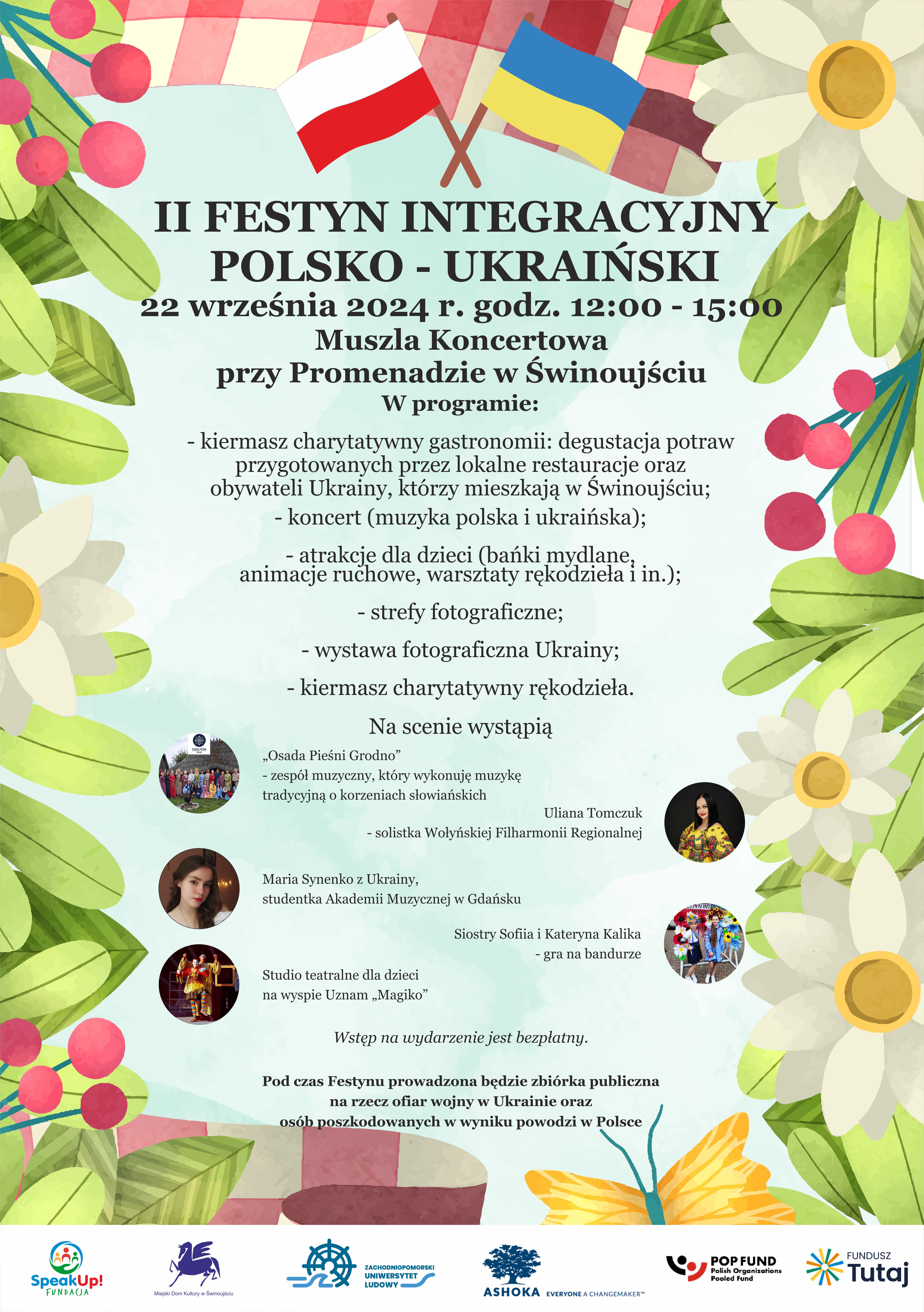Już 22 września 2024 r. w Muszli Koncertowej przy Promenadzie w Świnoujściu odbędzie się II Festyn Integracyjny Polsko-Ukraiński. Wydarzenie rozpocznie się o godzinie 12:00 i potrwa do 15:00. To nie tylko okazja do wspólnej zabawy i integracji mieszkańców, ale również wsparcia szczytnych celów charytatywnych.