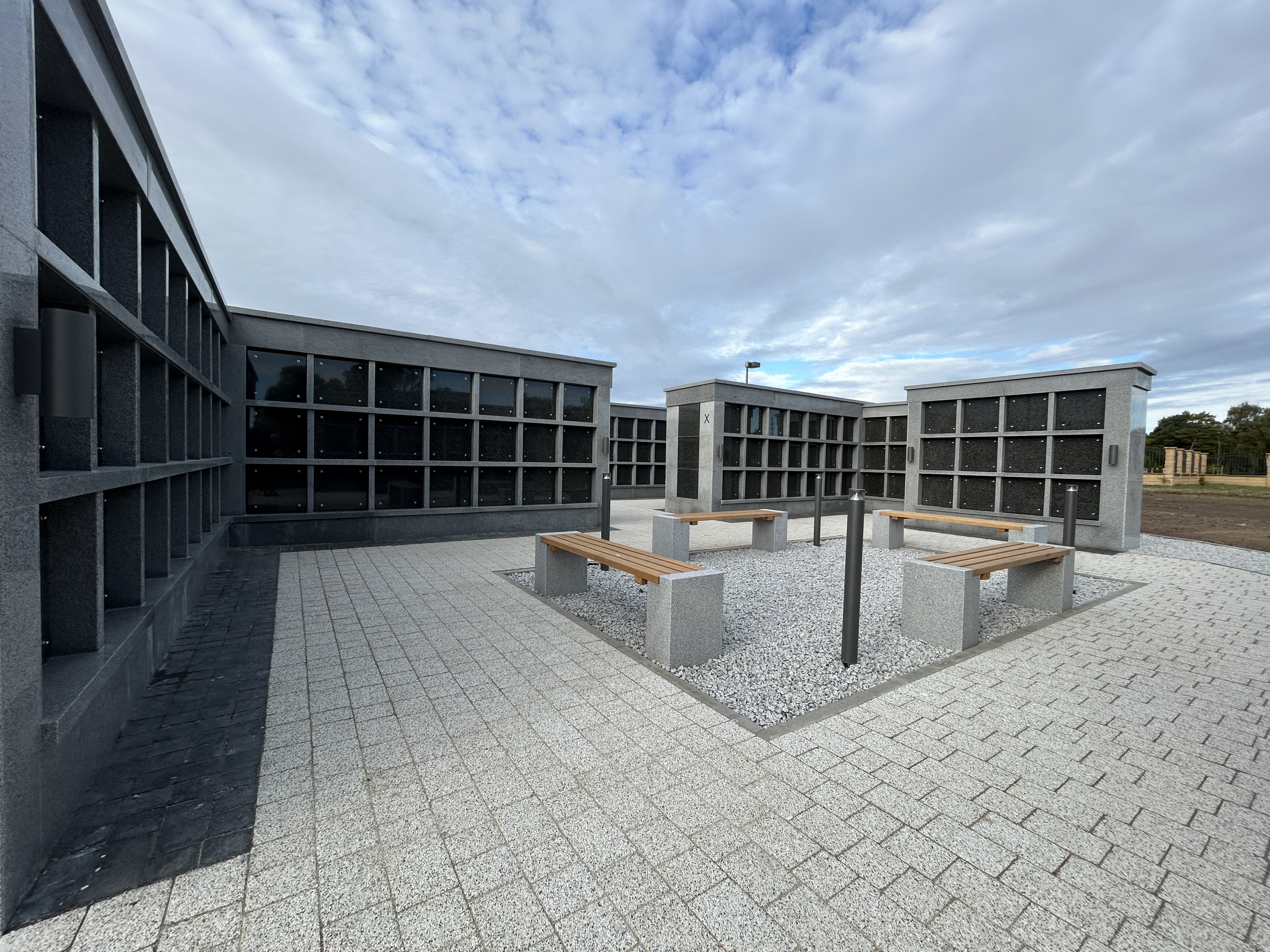 Nowe kolumbarium ma elegancki wygląd, jest wykonane z kamienia naturalnego i będzie korespondowało z nastrojem zadumy jaki powinien być właśnie w takich miejscach.