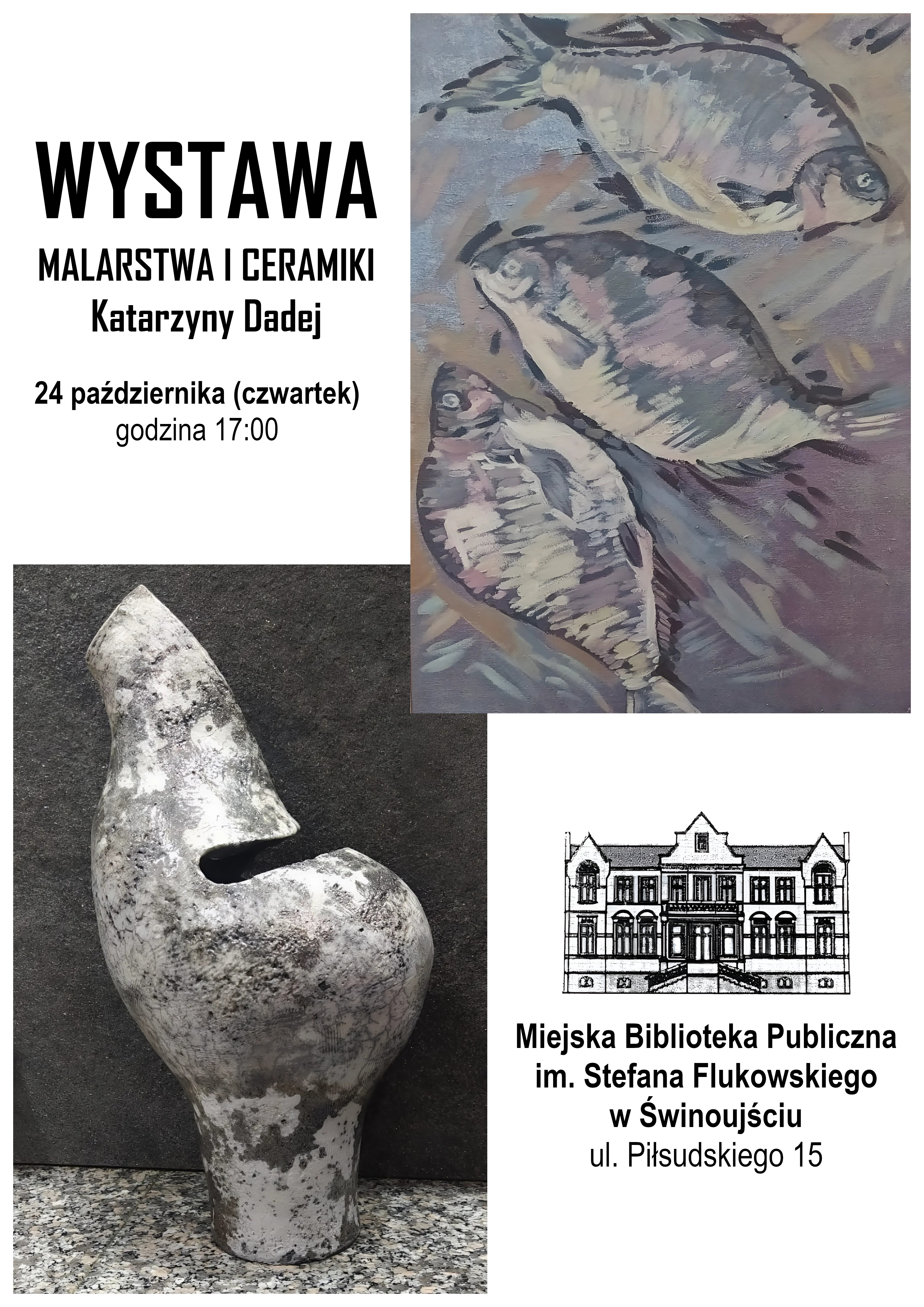 Miejska Biblioteka Publiczna im. Stefana Flukowskiego w Świnoujściu serdecznie zaprasza na wyjątkowe wydarzenie artystyczne. Już 24 października (czwartek) o godzinie 17:00 odbędzie się uroczyste otwarcie wystawy malarstwa i ceramiki autorstwa Pani Katarzyny Dadej.