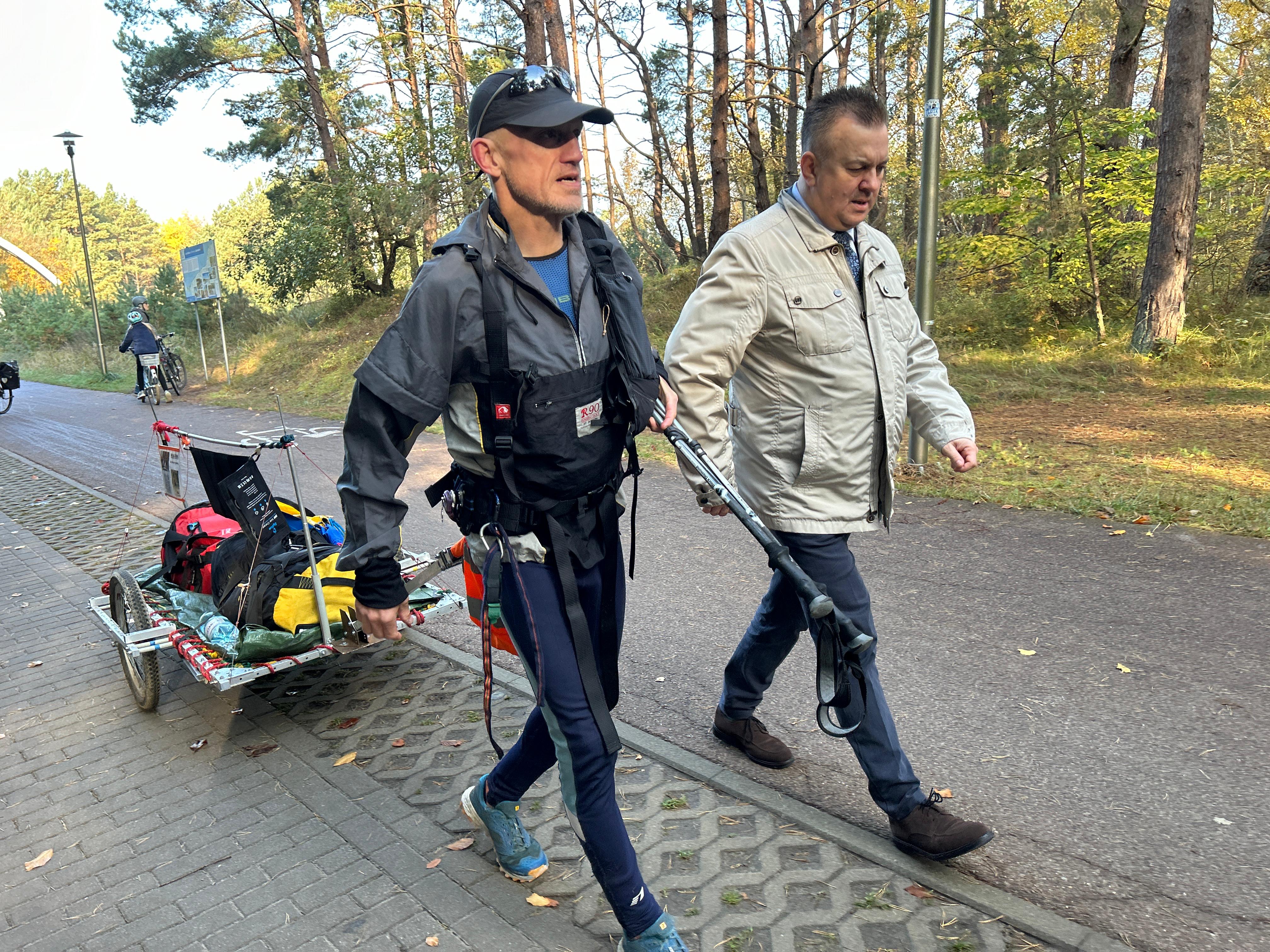 Wyprawę rozpoczął 13 października o godzinie 16.30 w Piaskach, ostatniej polskiej miejscowości na Mierzei Wiślanej, oddalonej o 4 kilometry od granicy z Rosją (Obwód Kaliningradzki ). Przez całą eskapadę szedł po plaży i poprzez konieczne obejścia ciągnąc swój 40-kilogramowy ekwipunek na specjalnym wózku. Wyprawę do ostatnich metrów koncentrował na plaży, gdzie także sypiał pod namiotem.