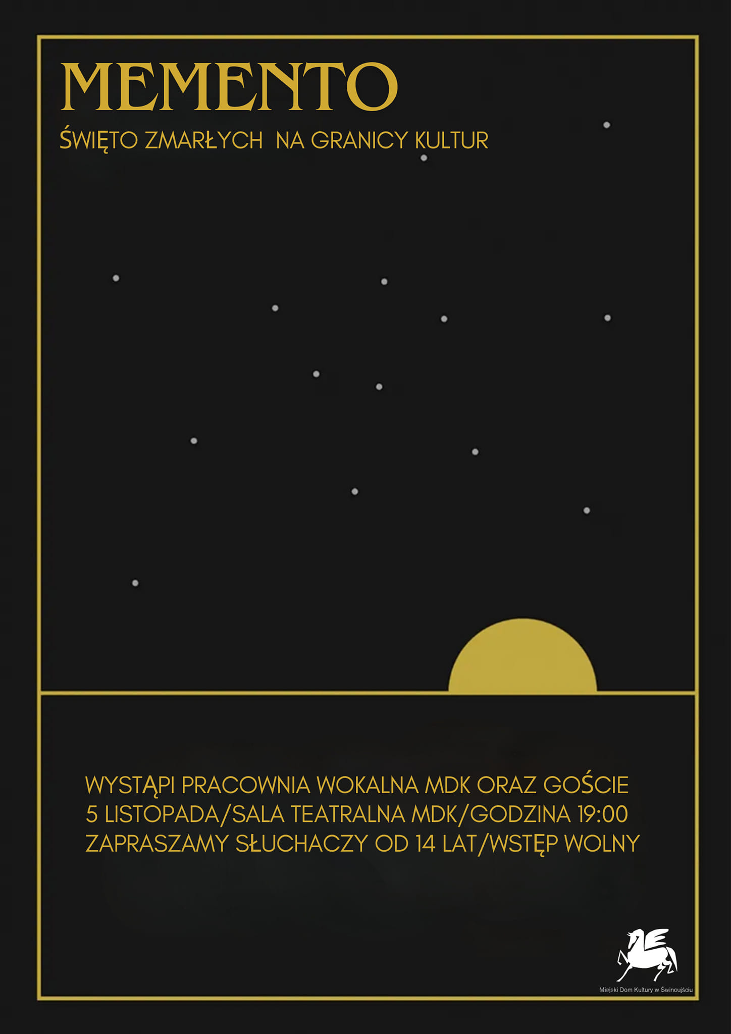 Zapraszamy na wyjątkowy koncert pt. "Memento - święto zmarłych na granicy kultur", w wykonaniu uczestników Pracowni wokalnej Miejskiego Domu Kultury oraz zaproszonych gości!
