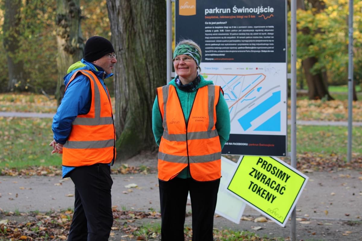 Szczególne podziękowania należą się wszystkim wolontariuszom, bez których spotkanie parkrunowe nie mógłby się odbyć. Koordynatorem spotkania była Natalia Maćków, a Tomasz Szafrański dbał o pomiar czasu. Joanna Szafrańska wydawała tokeny a Grzegorz Burakowski skanował uczestników. Nad koordynacją tunelu mety czuwała Jaśmina Kaczmarek, a fotorelację z wydarzenia przygotował Marcin Ruciński. Funkcję zamykającego stawkę pełnił Marceli Biskup, który jednocześnie zajął 35. miejsce w biegu, symbolicznie kończąc wydarzenie.
