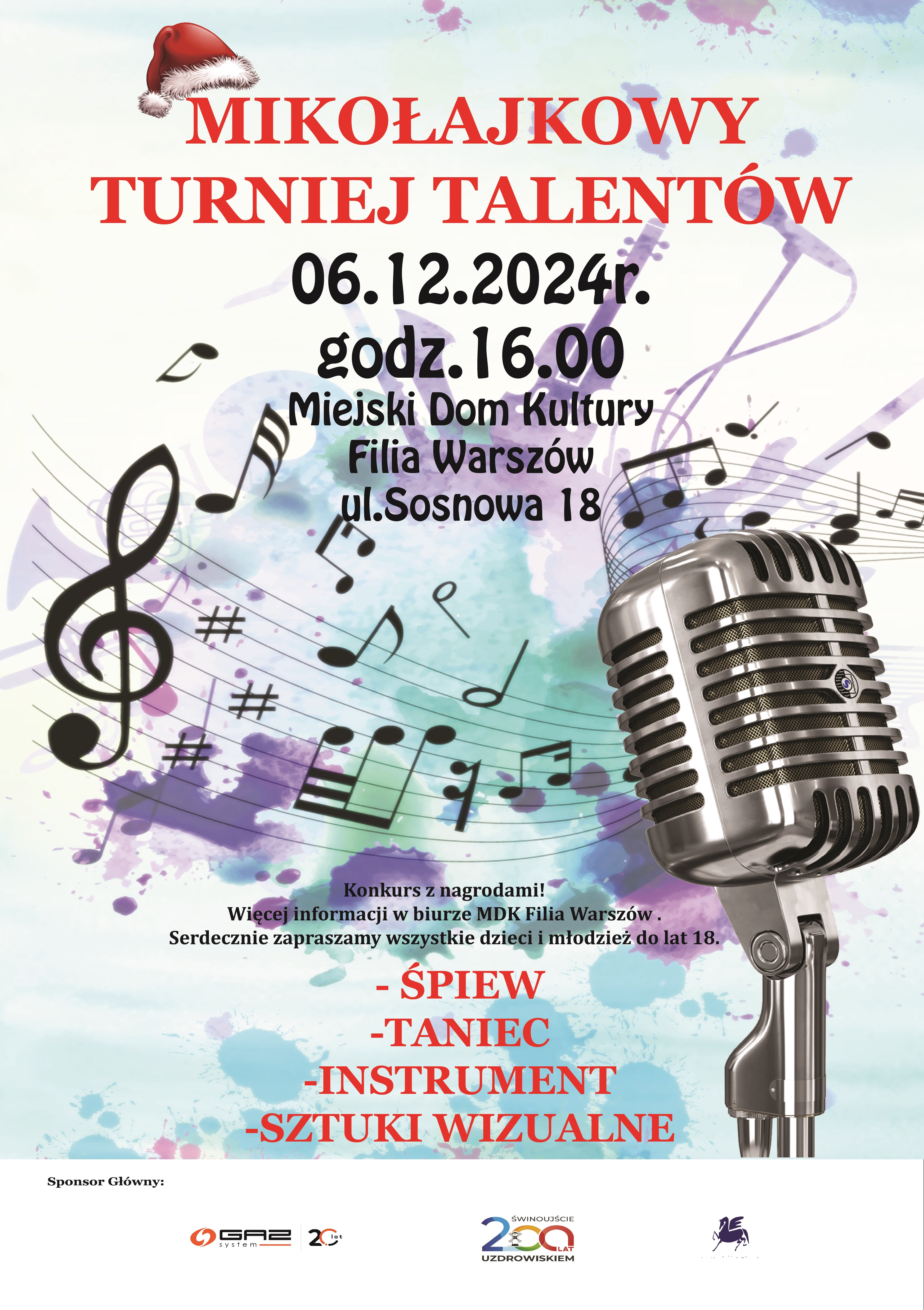 Zapraszamy gorąco wszystkie dzieci na Mikołajkowy Turniej Talentów organizowany w Filii nr 2 Miejskiego Domu Kultury na Warszowie, który odbędzie się oczywiście 6 grudnia od godz. 16.00