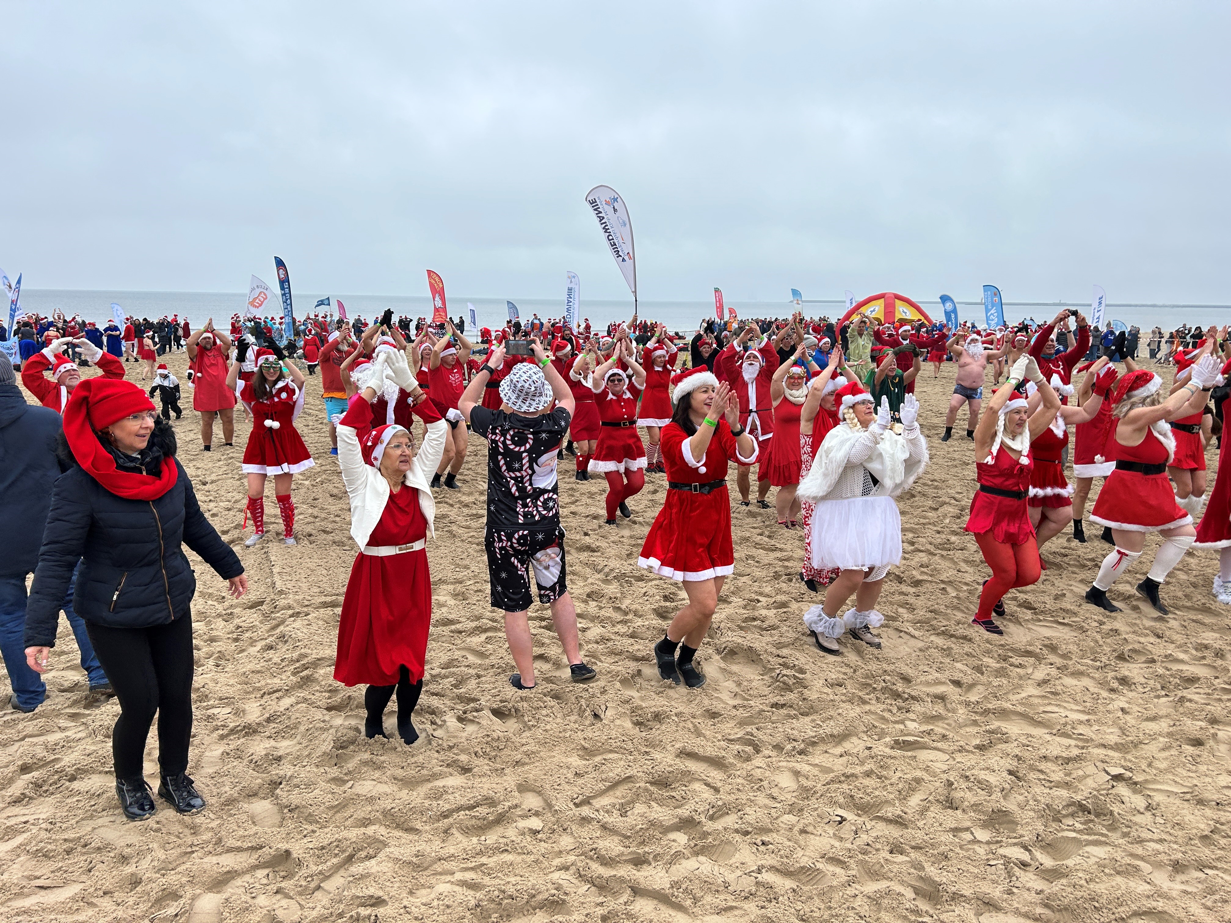 Uczestnicy wydarzenia, przebrani w mikołajowe kostiumy, ruszyli w barwnej paradzie wzdłuż promenady. Po wejściu na plażę, tuż obok Centrum Koordynacyjnego Ratowników, zostali powitani przez gospodarzy wydarzenia – Joannę Agatowską, Prezydenta Miasta Świnoujścia oraz Marka Bartkowskiego, Dyrektora Ośrodka Sportu i Rekreacji „Wyspiarz”.
