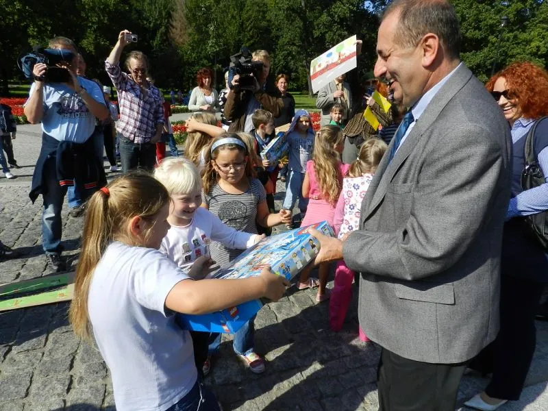 Najładniejsze prace zostały nagrodzone m.in. klockami Lego. Nagrody wręczał prezydent miasta Janusz Żmurkiewicz i jego zastępca Joanna Agatowska. Firmom REMONDIS, SKLEP ROWEROWY KOWALEWSKI oraz SKLEP ROWEROWY MIRELLA WINIARSKA serdecznie dziękujemy za ufundowanie nagród dla dzieci.