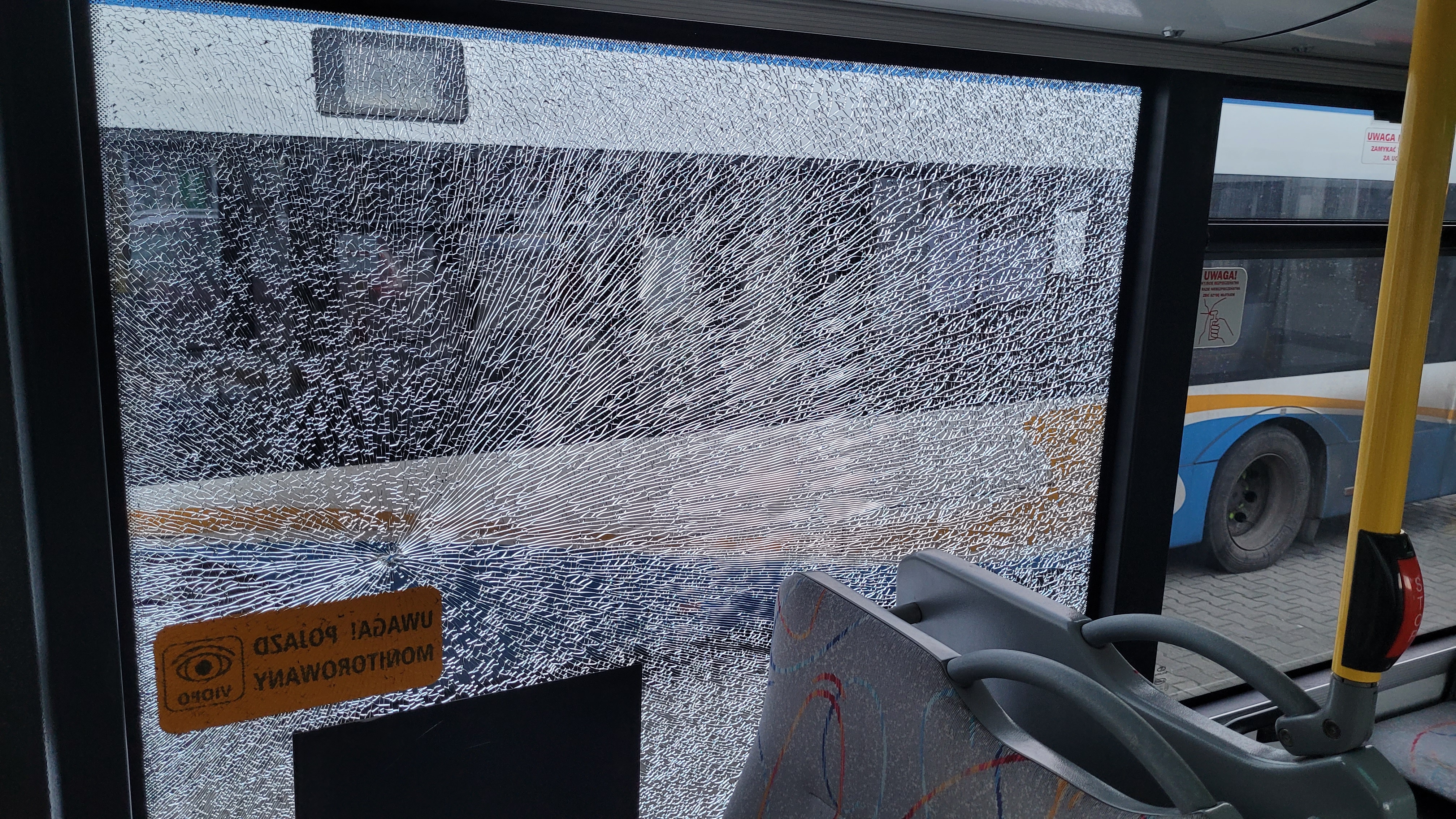 Rozbita szyba w autobusie. Policja szuka sprawcy