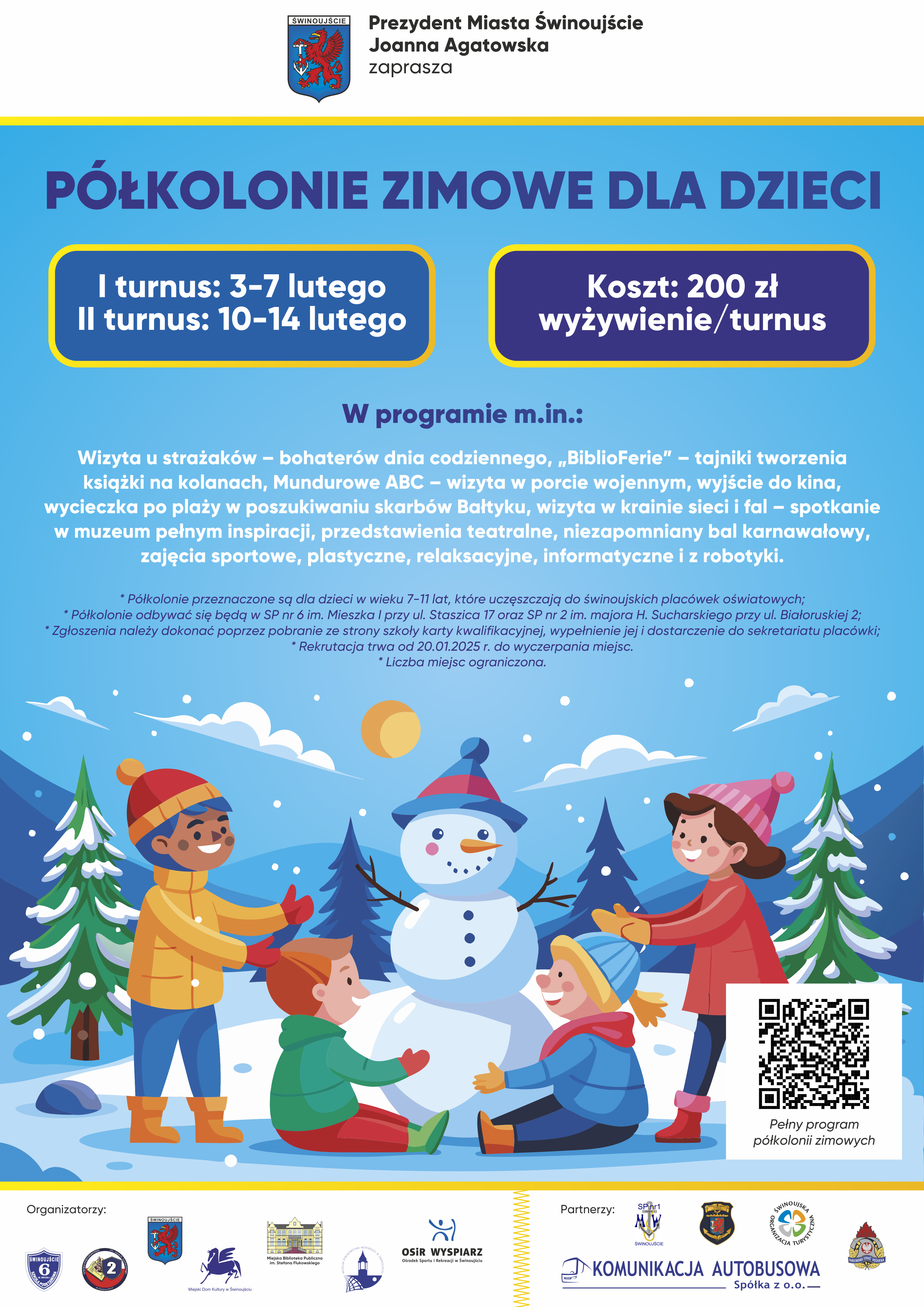 * Gmina Miasto Świnoujście w okresie ferii zimowych finansuje organizację półkolonii dla uczniów świnoujskich placówek oświatowych w wieku 7-11 lat.