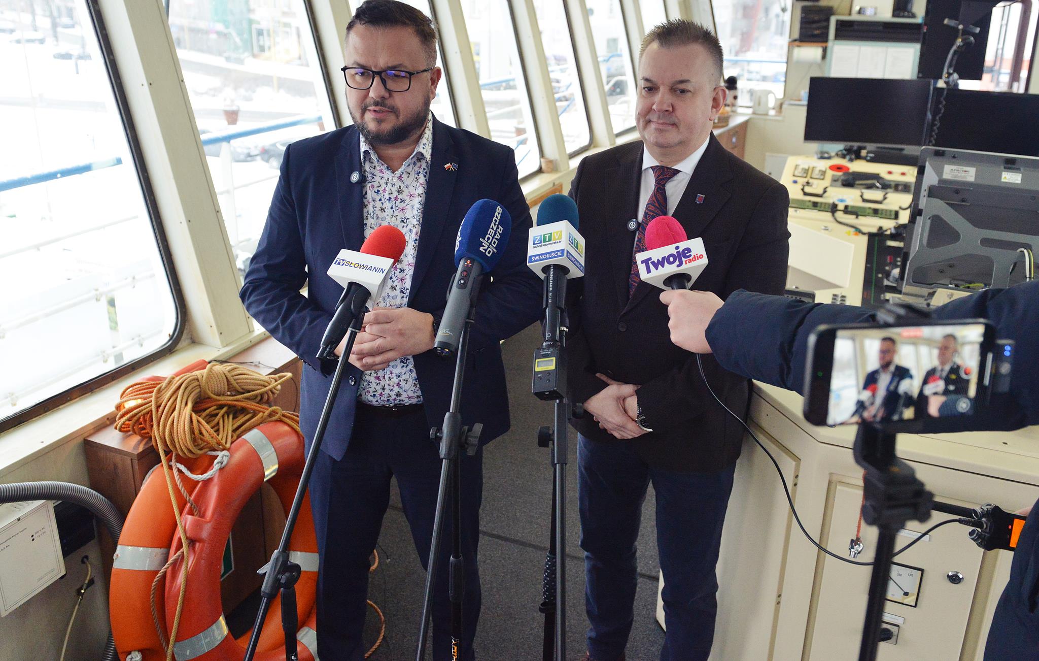 W czwartek, 13 lutego 2025r., w nietypowej scenerii odbyło się śniadanie prasowe z dziennikarzami, z udziałem Zastępców Prezydenta Świnoujścia. Zamiast tradycyjnej sali konferencyjnej, miejscem spotkania był jeden z wycofanych z eksploatacji promów "Bielik", co stanowiło symboliczne tło dla głównego tematu rozmów – kondycji miejskich promów.