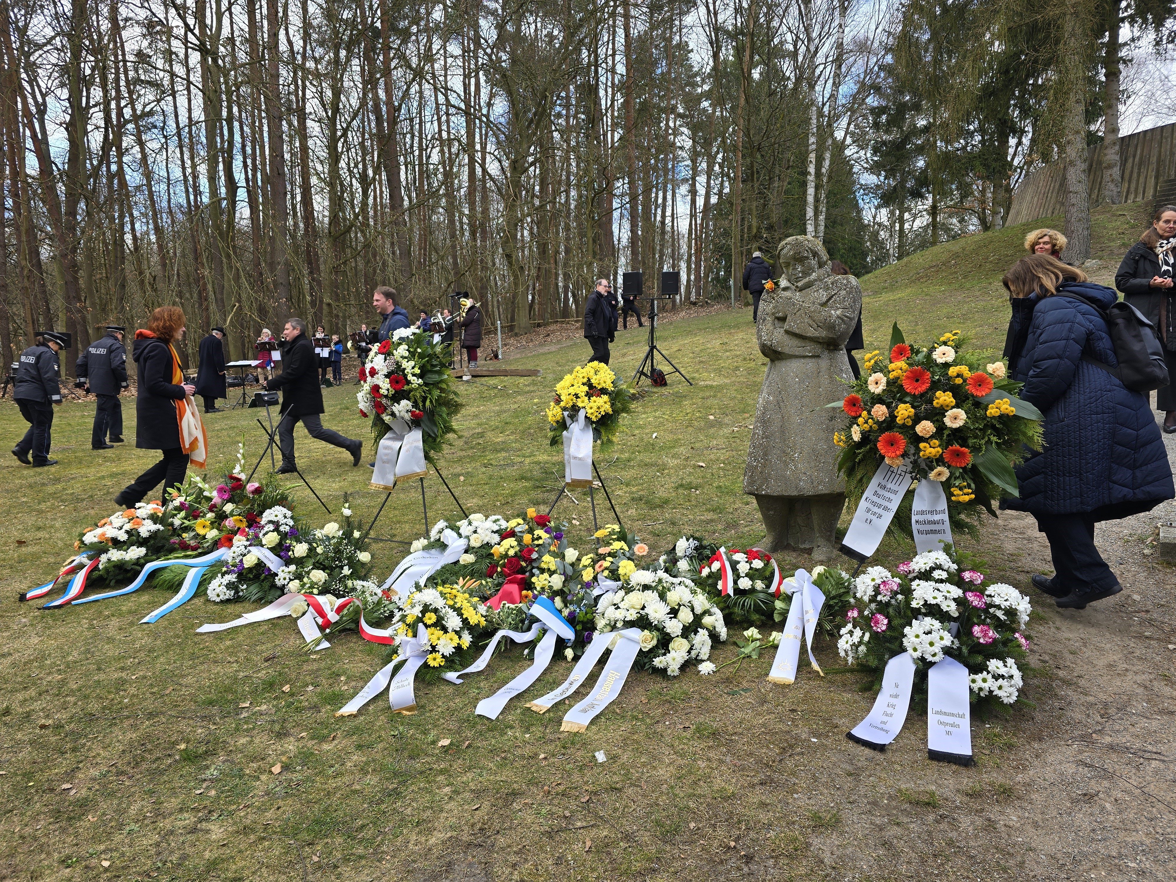 W uroczystości oprawę muzyczną zapewnił zespół instrumentów dętych pod nazwą Chór Puzonowy Friedrich z Bansinu. Natomiast uczestnicy europejskiego projektu „Erasmus +” wyrecytowali tekst „Chroń prawa człowieka - weź odpowiedzialność”, wiersz Krzysztofa Kamila Baczyńskiego oraz uhonorowali tragicznie zmarłych którym zebrani oddali także hołd minutą ciszy. Ostatnim akordem uroczystości było złożenie wieńców i wiązanek kwiatów pod rzeźbą „Marznąca” autorstwa Rudolfa Leptiena z Bansin, która powstała na przełomie roku 1952/53, ale dopiero pod betonową rotundą ustawiono ją w 1984 roku.