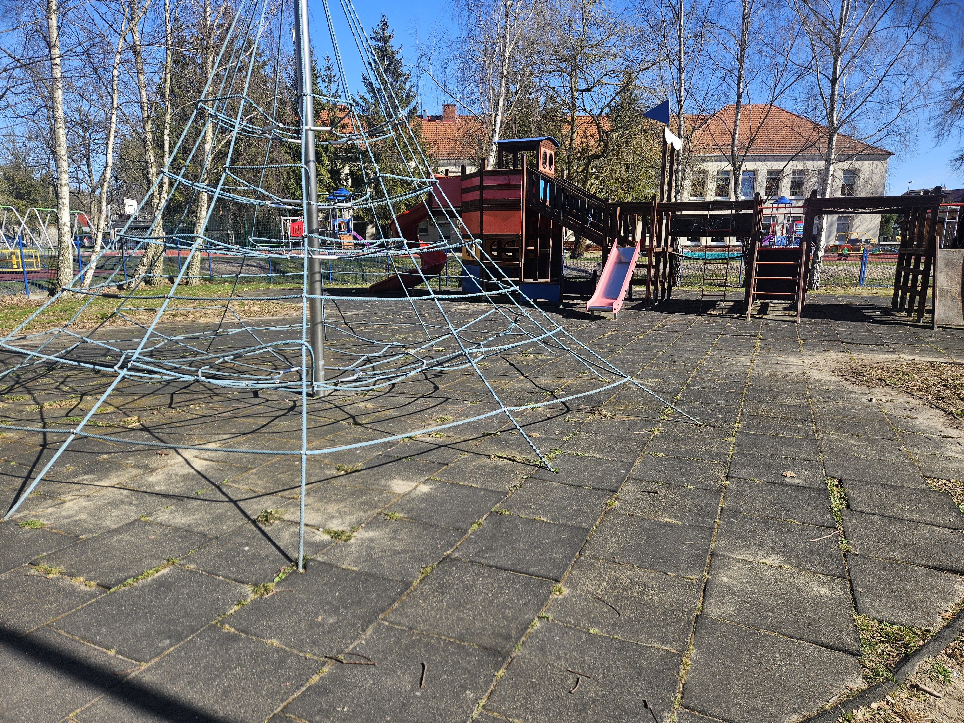 - przy ul. Grunwaldzkiej przeprowadzono miejscowe naprawy nawierzchni poliuretanowej i z polbruku, a także wzmocniono mocowanie urządzeń siłowych;