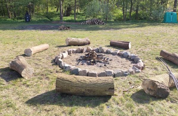 Plac piknikowy to przyjazna przestrzeń — wyposażona w ławostoły i miejsce na ognisko. Co ważne, ogień można rozpalać wyłącznie w wyznaczonym miejscu. Dla wygody użytkowników przygotowano drewno opałowe — nie trzeba więc niczego dźwigać z domu, wystarczy zabrać kiełbaski i dobry humor.