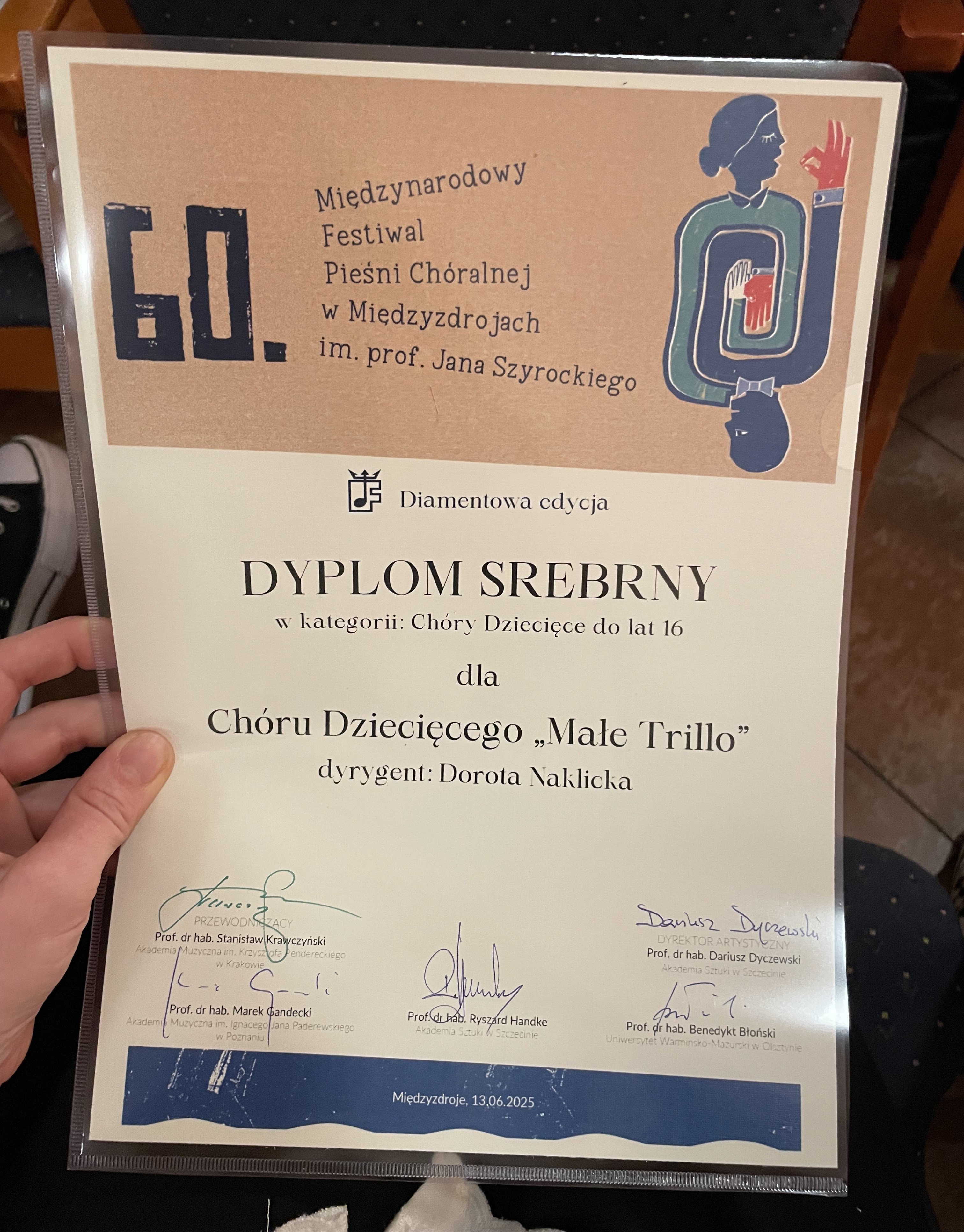 Pod batutą Doroty Naklickiej aż trzy chóry ze Świnoujścia zdobyły laury na 60. Międzynarodowym Festiwalu Pieśni Chóralnej im. prof. Jana Szyrockiego w Międzyzdrojach. Chór Dziecięcy „Małe Trillo” wywalczył Srebrny Dyplom oraz nagrodę specjalną, natomiast Miejski Chór Mieszany „Logos” i Miejski Chór Żeński „Logos” wróciły z Brązowymi Dyplomami. Taki muzyczny hat-trick nie zdarza się często – to wyjątkowe osiągnięcie jednej dyrygentki, która poprowadziła do sukcesu kilkudziesięciu chórzystów.