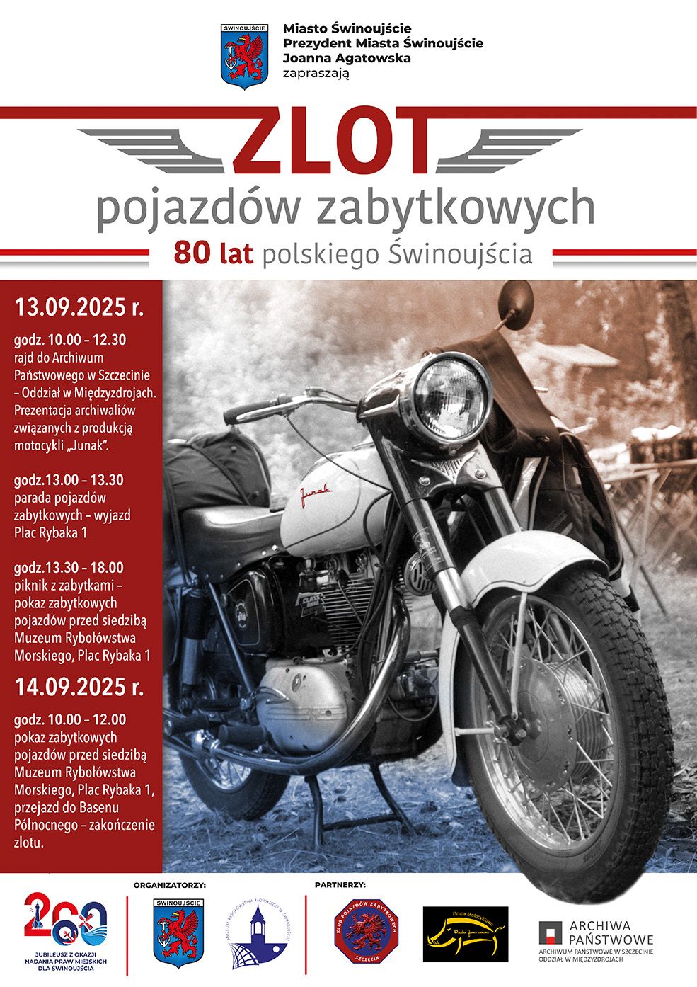 Wydarzenie współorganizujemy z Archiwum Państwowym w Szczecinie Oddział w Międzyzdrojach, Klubem Pojazdów Zabytkowych Szczecin i Grupą Dziki Junak