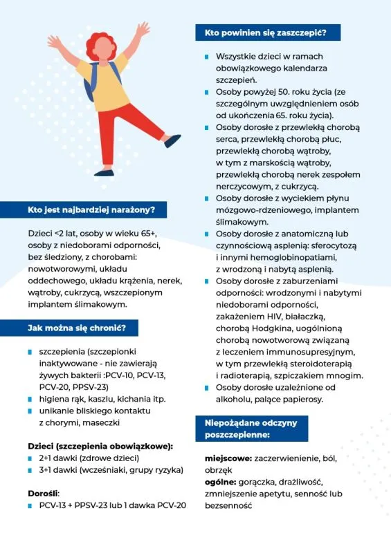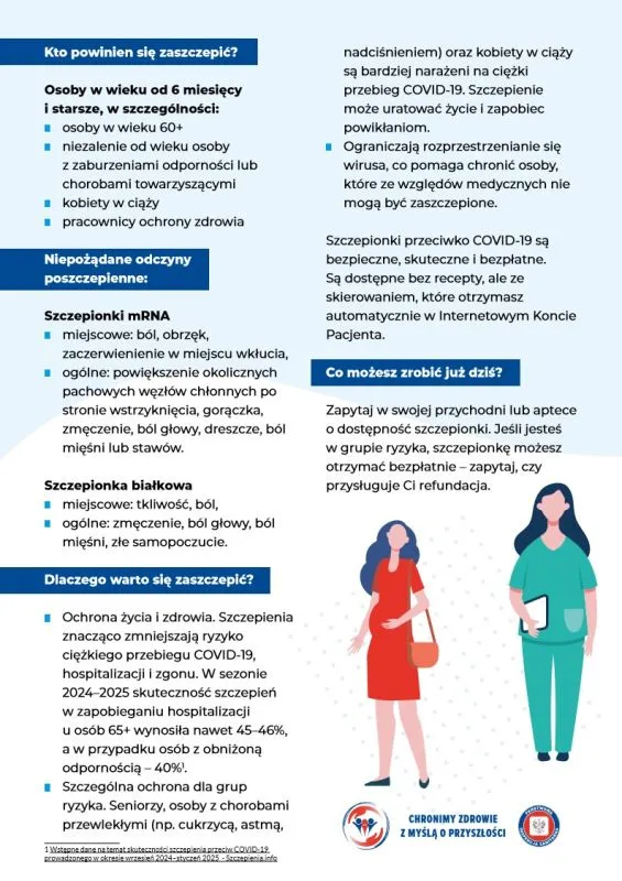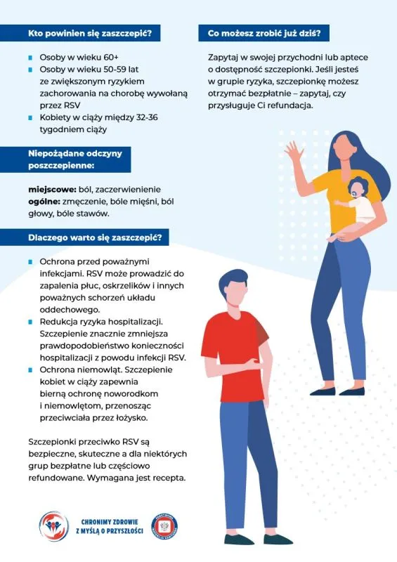 * Seniorzy. Osoby starsze są szczególnie narażone na powikłania. Zalecane szczepienia: grypa, COVID-19, RSV, pneumokoki, krztusiec. Wiele z nich jest darmowych lub refundowanych.