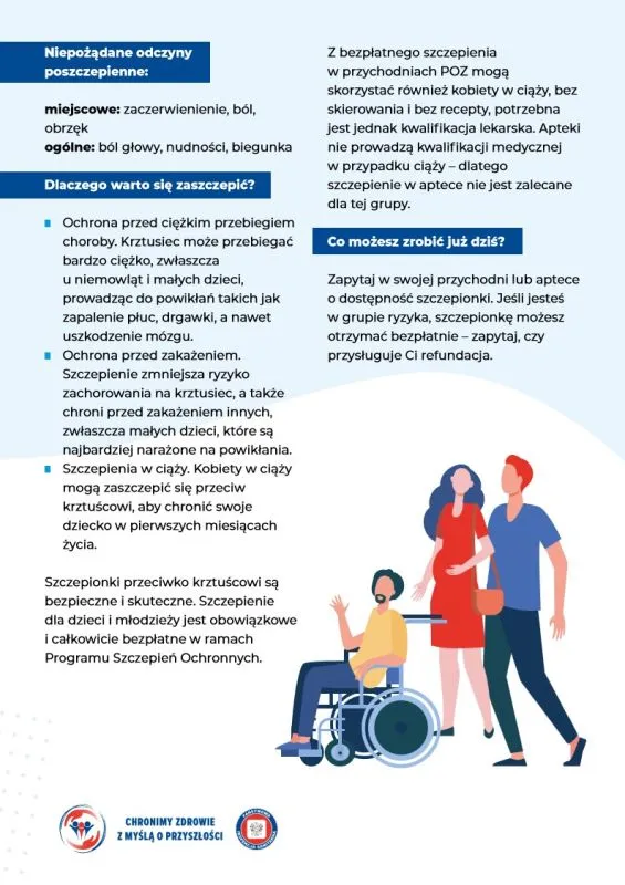 * Kobiety w ciąży. Szczepienia chronią zarówno przyszłą mamę, jak i dziecko w pierwszych miesiącach życia. Zalecane: grypa, krztusiec, RSV, COVID-19.