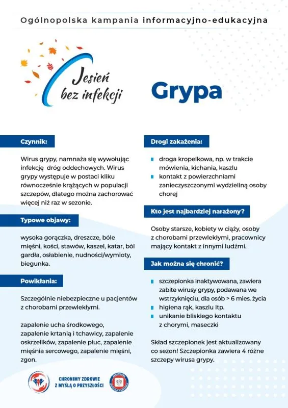 Zadbajmy o siebie i swoich bliskich: wybierzmy szczepienia i zdrowy styl życia. To skuteczna, bezpieczna i dostępna metoda ochrony w sezonie jesienno-zimowym.