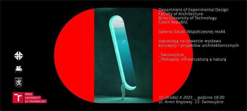 15 X (wyjątkowo środa) o godzinie 18.00, w galerii ms44 otwieramy przestrzeń architektury i zapraszamy na otwarcie wystawy prezentującej koncepcje i projekty architektoniczne studentów czeskiego Instytutu Projektowania Eksperymentalnego, Wydziału Architektury, Uniwersytetu Technicznego w Brnie. To ważna dla świadomej społeczności lokalnej a więc tożsamości wyspy, prezentacja opracowań, zrealizowanych pod opieką nauczyciela akademickiego, architekta Szymona Rozwałki, a dotyczących obszaru rozpiętego pomiędzy Basenem Północnym a falochronem zachodnim w Świnoujściu. Ten projekt to intensywny, inkluzywny dialog o przyszłości, pomiędzy dystopią a utopią. Dla wyspiarzy, koniecznie samorządowców, radnych, pozycja obowiązkowa. Środa 15 X godzina 18.00, Galeria Sztuki Współczesnej ms44, wstęp wolny, konieczny.