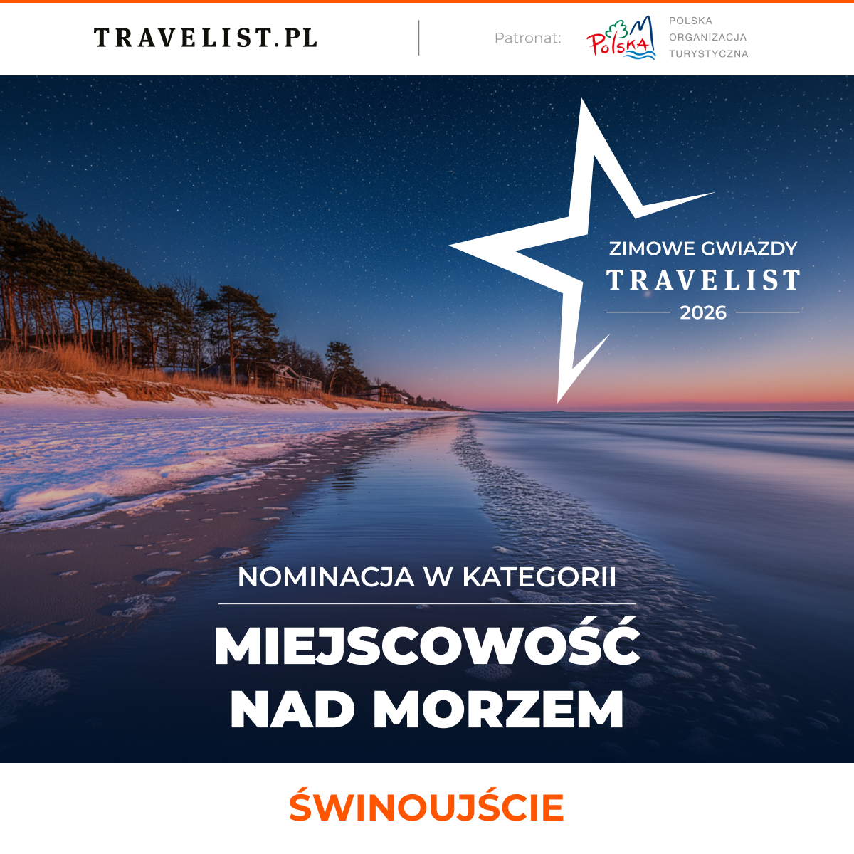 Magazyn Travelist nominował Świnoujście w plebiscycie Zimowe Gwiazdy Travelist 2026. Znaleźliśmy się w gronie 10 miejscowości nadmorskich wybranych przez ekspertów redakcji, która stoi za jednym z najbardziej rozpoznawalnych rankingów turystycznych w Polsce.