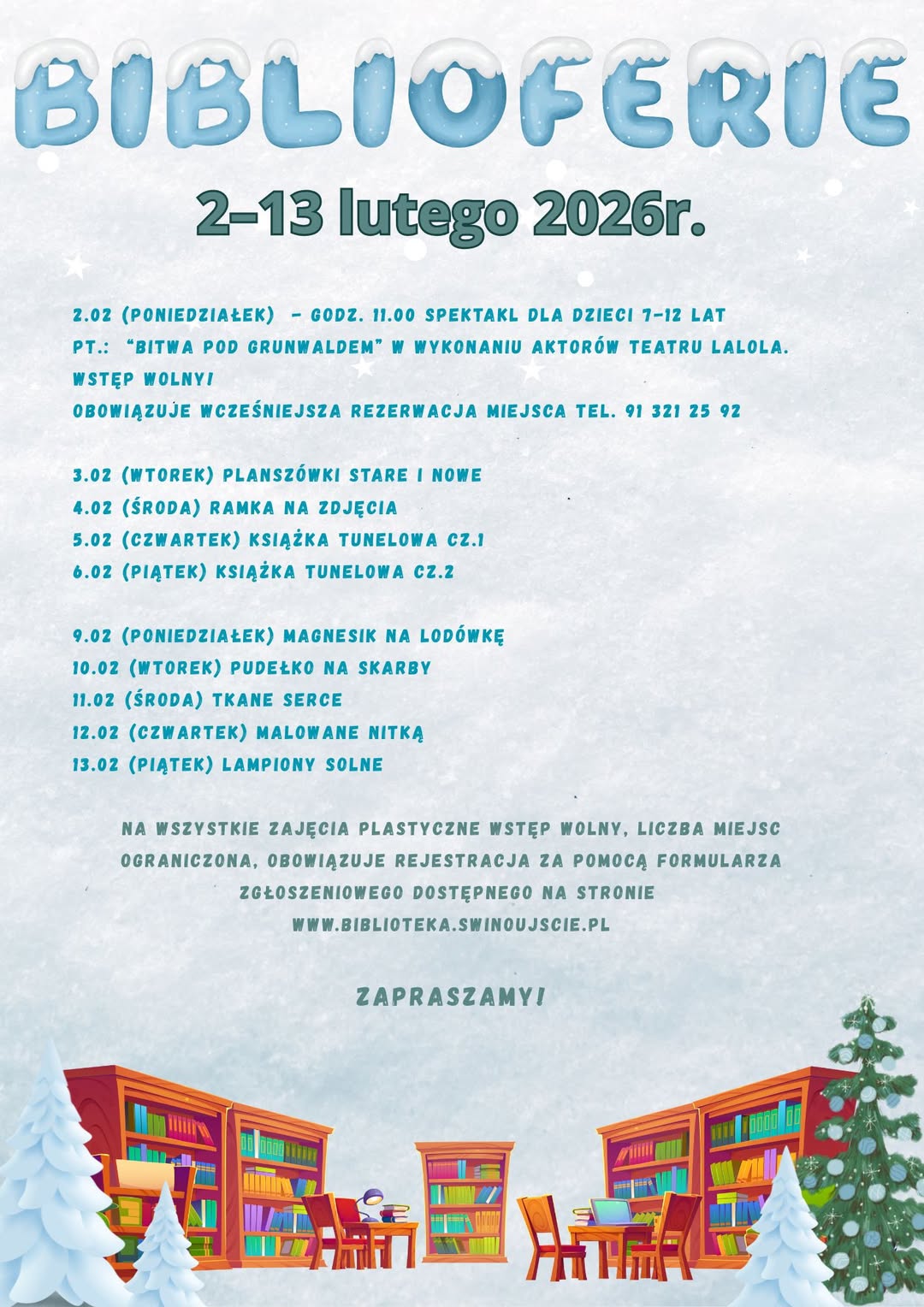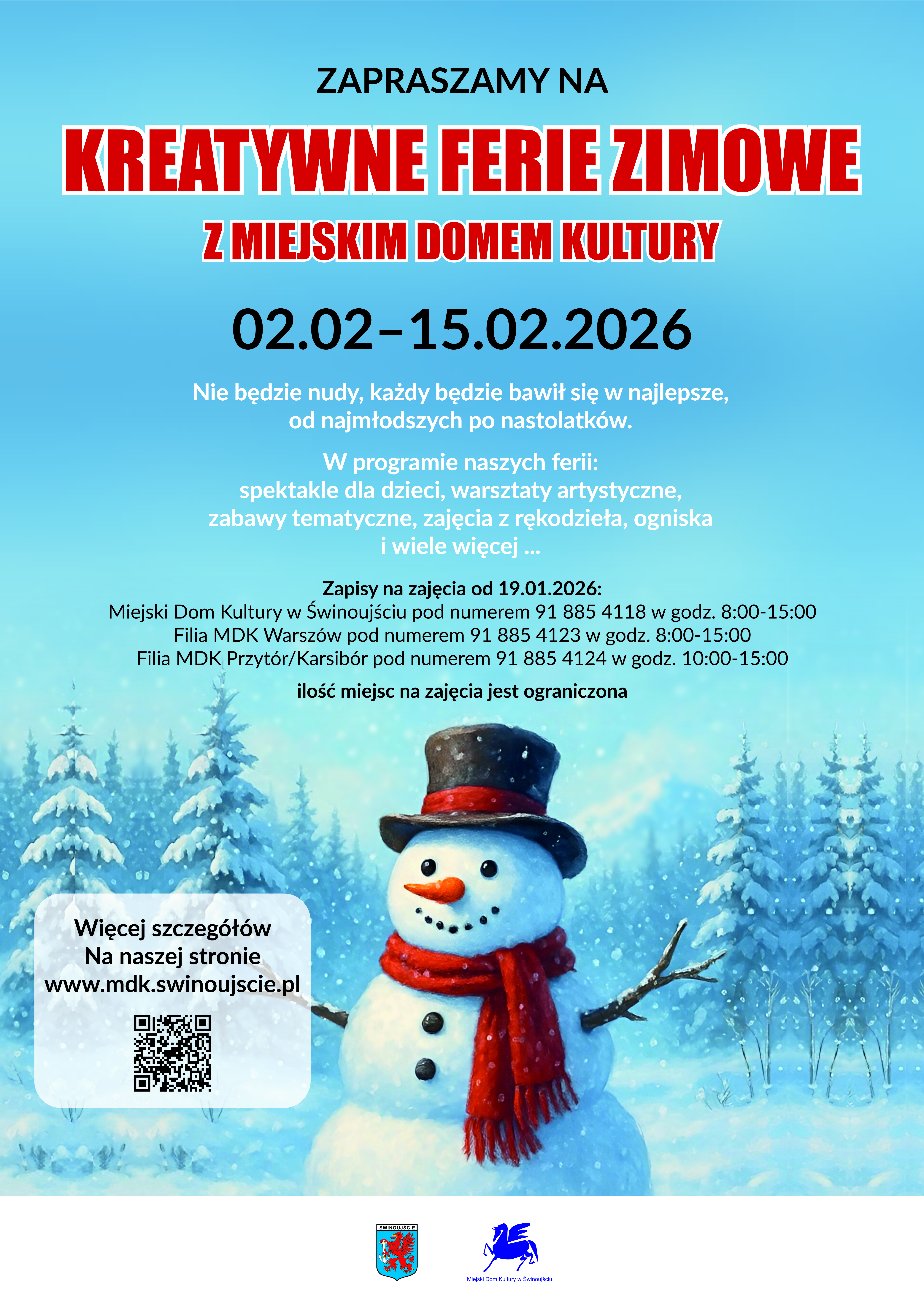 13.00 –14.00 Warsztaty tematyczne „Bezpieczna zima w praktyce”- Filia MDK Karsibór