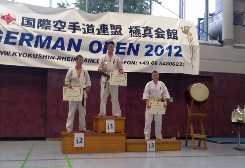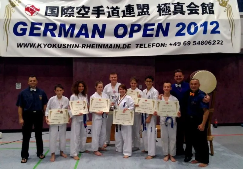 W miniony weekend, odbyły się Otwarte Mistrzostwa Niemiec GERMAN OPEN 2012, których organizatorem był Klub Karate Kyokushin z Frankfurtu n/Menem. W zawodach wzięło udział 196 zawodników, z 36 ośrodków z 13 krajów. Na tatami występowali zawodnicy z Niemiec, Francji, Rosji, Czech, Węgier, Austrii, Holandii, Słowacji, Izraela, Chorwacji, Belgi, Słowenii i Polski. Zawodnicy rywalizowali ze sobą w konkurencjach kumite wg wieku i wagi oraz w konkurencji kata. Polskę reprezentowali zawodnicy ze Świnoujskiej Akademii Karate Kyokushin oraz z Wrocławskiego i Siemianowskiego Klubu karate Kyokushin i, sensei Paweł Sujka wystawił ośmioosobową drużynę ze Świnoujścia, która bardzo dobrze wywiązała się z reprezentowania kraju i klubu na Otwartych Mistrzostwach Niemiec zdobywając 1 złoty oraz trzy brązowe medale.