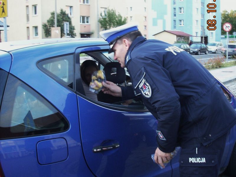Policjanci Ruchu Drogowego od wczesnych godzin rannych na ul. Matejki przeprowadzali działania profilaktyczne mające na celu sprawdzenie prawidłowości przewożenia dzieci w fotelikach. Funkcjonariusze przypominali rodzicom o obowiązujących przepisach przewożenia swoich pociech, tj. obowiązku umieszczania dziecka w foteliku do 12 roku życia i wzrostu poniżej 150 cm oraz zapinania każdorazowo w pasy bezpieczeństwa wszystkich uczestników podróży. Milusińscy, którzy w kontrolowanych pojazdach spełniali wymogi przepisów ruchu drogowego nagrodzeni zostali pluszową maskotką Pancernik Gustaw. Łącznie rozdano kilkadziesiąt maskotek.