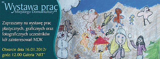 Zapraszamy na otwarcie wystawy prac plastycznych oraz fotograficznych uczestników kół zainteresowań działających w Miejskim Domu Kultury w Świnoujściu. Prace plastyczne zostały wykonane przez dzieci w wieku szkolnym, zaś wszystkie zdjęcia zostały przygotowane przez osoby dorosłe - fotografów amatorów.