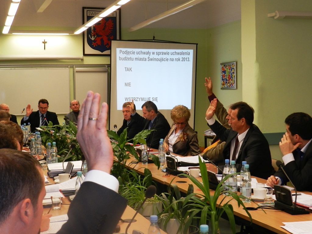 Rada Miasta Świnoujście większością głosów przyjęła budżet miasta na 2013 rok. Za przyjęciem budżetu głosowało 16 radnych, w tym 1 z PO, przeciw czterech radnych PO.