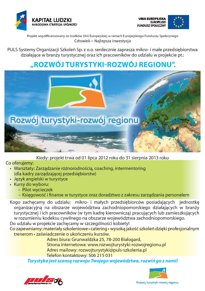 Strona internetowa Projektu: http://rozwojturystyki-rozwojregionu.pl/ (dokumenty rekrutacyjne do pobrania z zakładki “Wymagane dokumenty”)