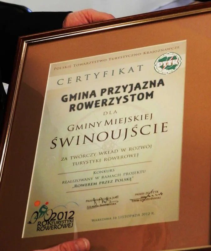 - Sam rower to nie wszystko – mówił prezes Zbigniew M. Błaszczyk. – Do uprawiania turystyki rowerowej potrzebna jest jeszcze dobra infrastruktura, a ta w Świnoujściu rozwija się w szybkim tempie. Macie naprawdę dobre ścieżki rowerowe. Do tego potraficie je promować. Właśnie to komisja konkursowa szczególnie doceniła przyznając certyfikat.