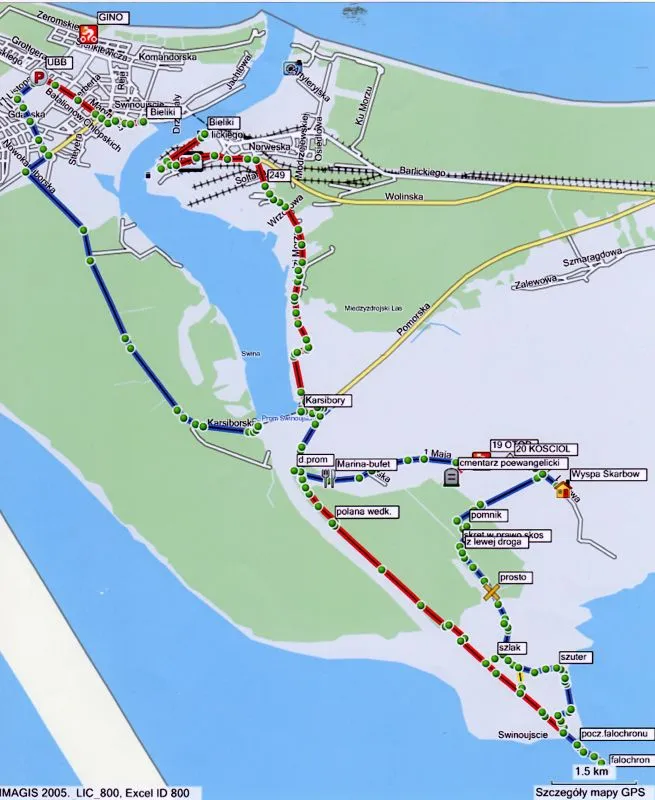 na trasie Wolin-Warnowo-Żubrowisko-Międzyzdroje-Świnoujście - o długości 57.8 km.