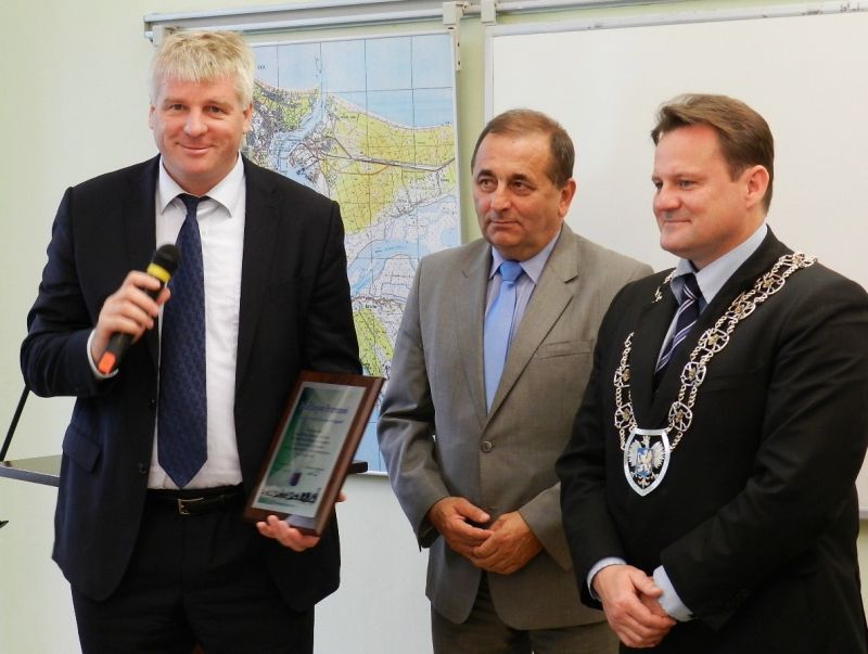 Na pamiątkę tego ważnego wydarzenia Burmistrz Lars Petersen, który nie ukrywał wzruszenia tak ciepłym przyjęciem,  otrzymał z rąk przewodniczącego Rady Miasta i Prezydenta Świnoujścia pamiątkowy grawerton.