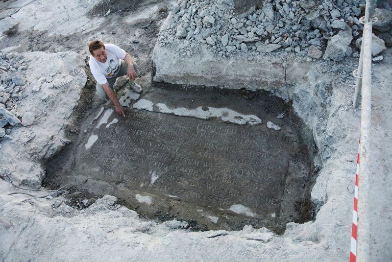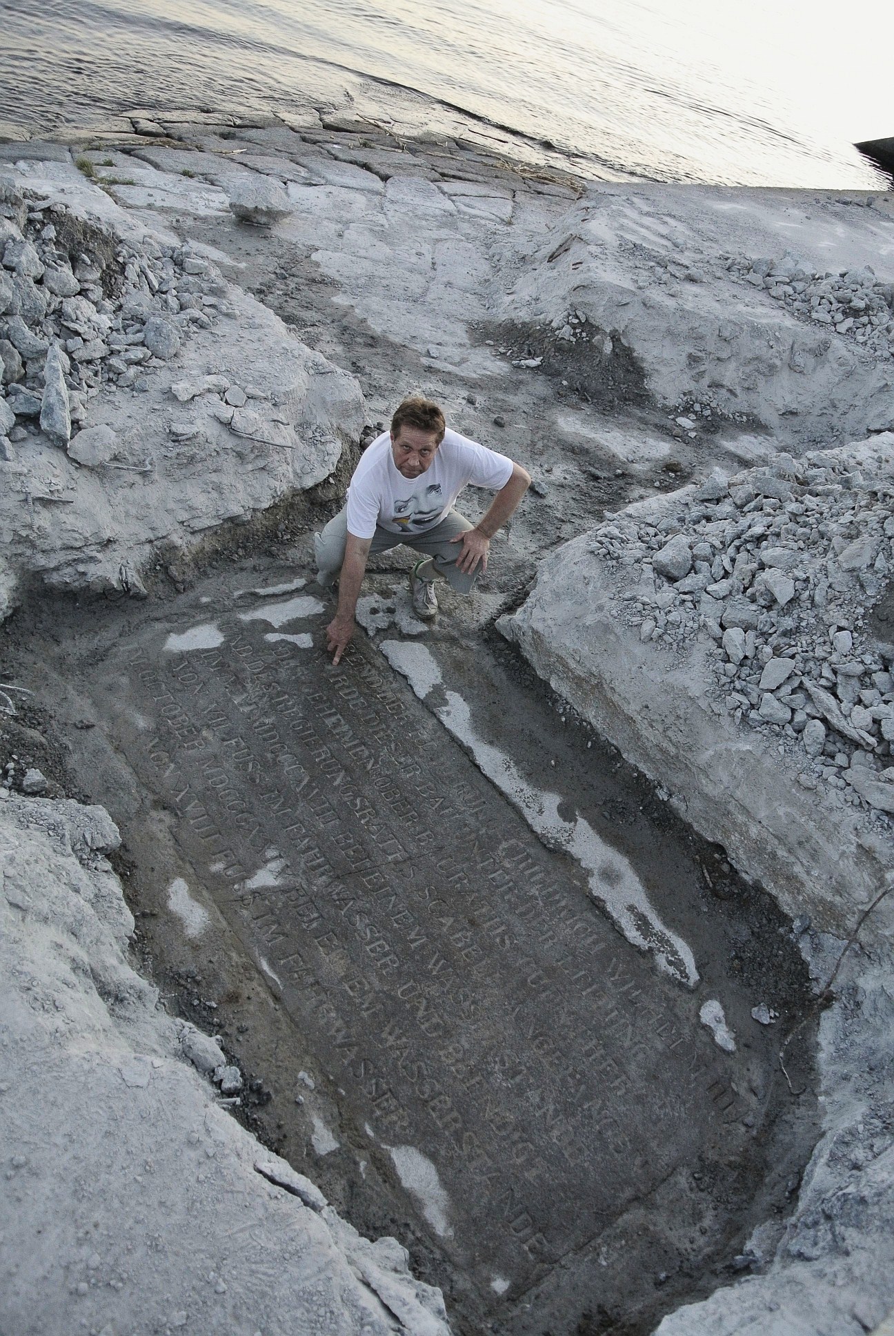 - Pierwotnie umiejscowiliśmy ją w innym miejscu, bliżej wody. Po skuciu kilku metrów sześciennych betonu, gdy już chcieliśmy zrezygnować, nagle spod betonu zobaczyliśmy pierwsza literkę! Udało się! Radość trudna do opisania - mówi drugi z odkrywców Krzysztof Pleśniak.