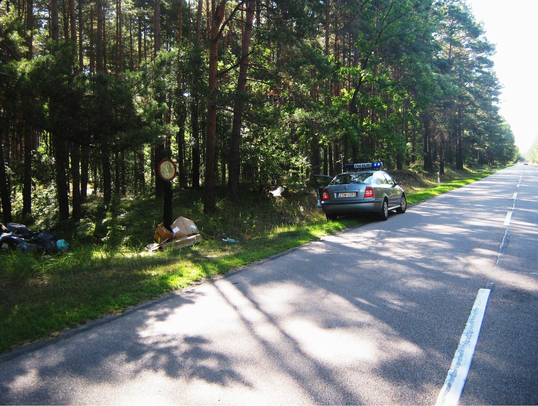 Rowerzysta telefonicznie poinformował miejskich strażników. Sterta odpadów leżała blisko przy jezdni, od strony miasta około 1,5 km od przeprawy promowej Karsibór, po lewej stronie.