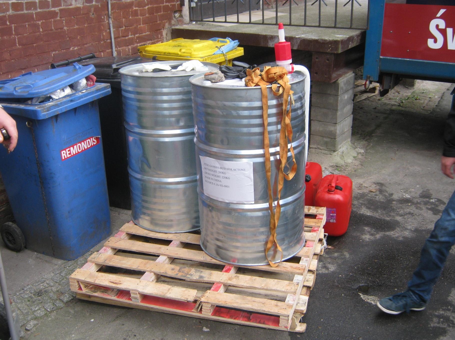 - Natychmiast pojechaliśmy we wskazane miejsce – opowiada komendant SM Mirosław Karliński. – Zastaliśmy tam trzech obywateli Niemiec, którzy przelewali płyn z dużych 200-litrowych beczek do mniejszych pojemników i wnosili do wynajmowanego pomieszczenia w budynku tuż obok.