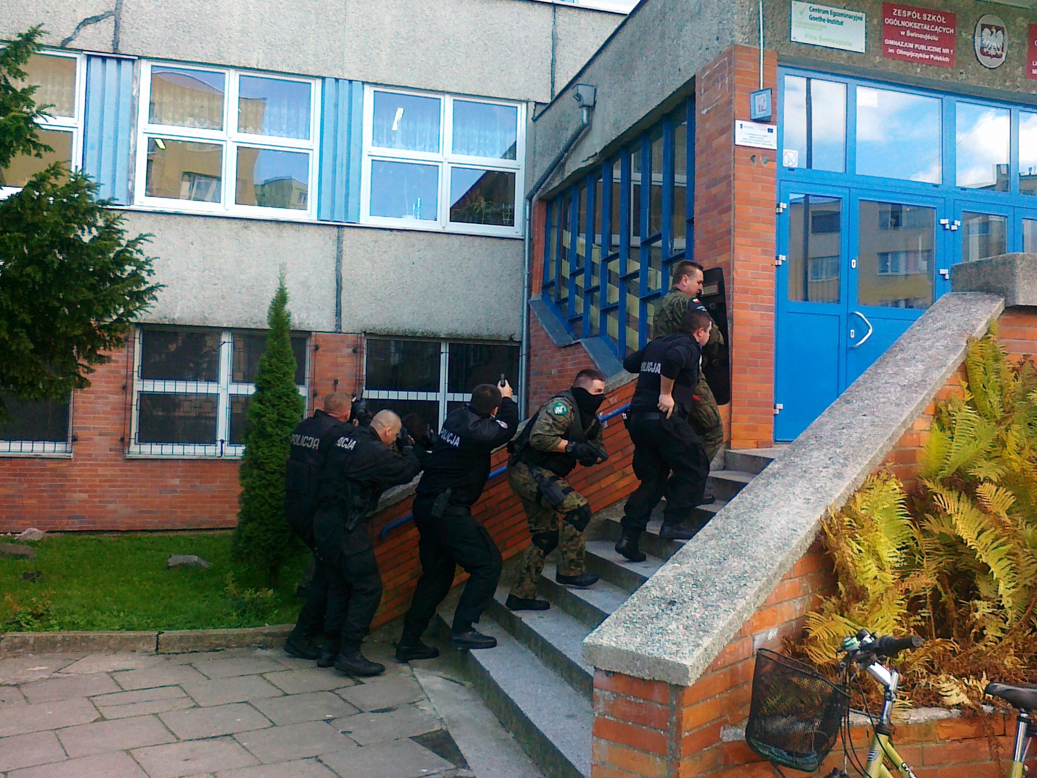 Szkolenie objęło nie tylko wiedzę teoretyczną, ale również jej zastosowanie w praktyce. W jednym ze świnoujskich gimnazjów przeprowadzono symulowany atak na szkołę. Były strzały, byli zakładnicy i odbijający ich funkcjonariusze świnoujskiej policji, straży granicznej, a nawet żandarmerii. W sprawnej akcji ewakuacji kolejno uwalnianych zakładników uczestniczyła z kolei Straż Miejska.