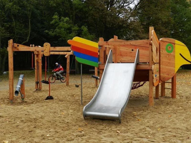 Miejsce pod nowy plac zabaw przy ulicy Mieszka I przygotowano już w ubiegłym roku. Wykonano nowe alejki, oświetlenie, wybudowano toaletę publiczną przystosowaną dla osób niepełnmosprawnych, wyposażoną w przewijak dla niemowląt oraz ciepłą wodę, ustawiono ławki. W tym roku zamontowano urządzenia do zabawy. Wszystkie wykonane z odpowiednio zaimpregnowanego drewna. Jest ptak ze zjeżdżalnią, równoważnia, bujawki na sprężynach, huśtawka „Bocianie gniazdo”, drabinki do wspinania itp.