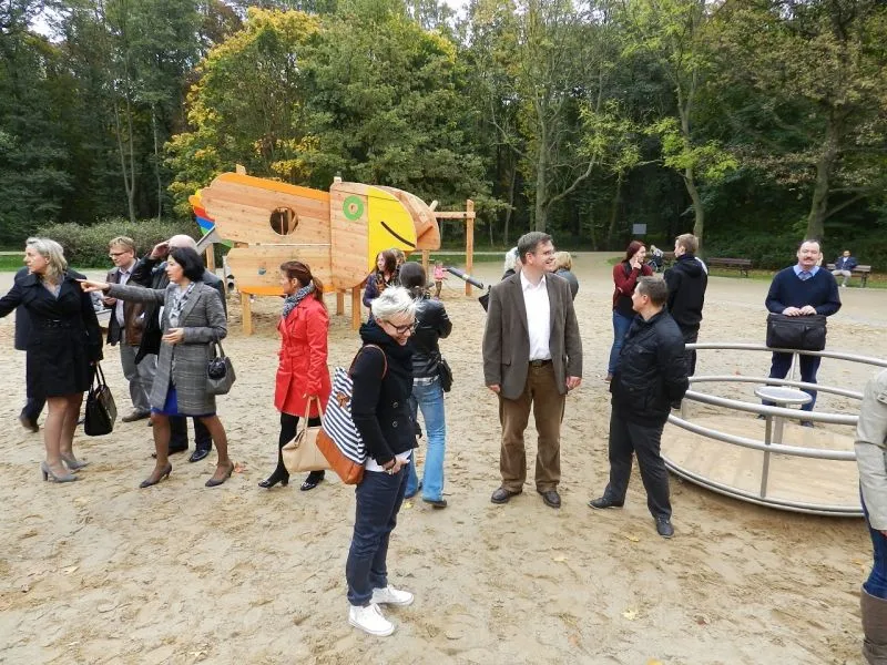 Edukacyjny plac zabaw w Parku Zdrojowym przy ul. Mieszka I powstał w ramach wspólnego polsko-niemieckiego projektu pod nazwą „Morze Bałtyckie – łączące wyspy, kraje, kultury i regiony przyrodnicze”. Koszt budowy placu zabaw, kupna i zamontowania urządzeń oraz zagospodarowanie terenu wokół to 1,8  mln złotych. Inwestycja była aż w 85 procentach dofinansowana z unijnych funduszy. Partnerem wiodącym projektu była Gmina-Miasto Świnoujście. Natomiast po stronie niemieckiej Park Krajobrazowy Wyspy Uznam, Ośrodek Edukacji i Spotkań Młodzieży GOLM oraz miasto Uznam.