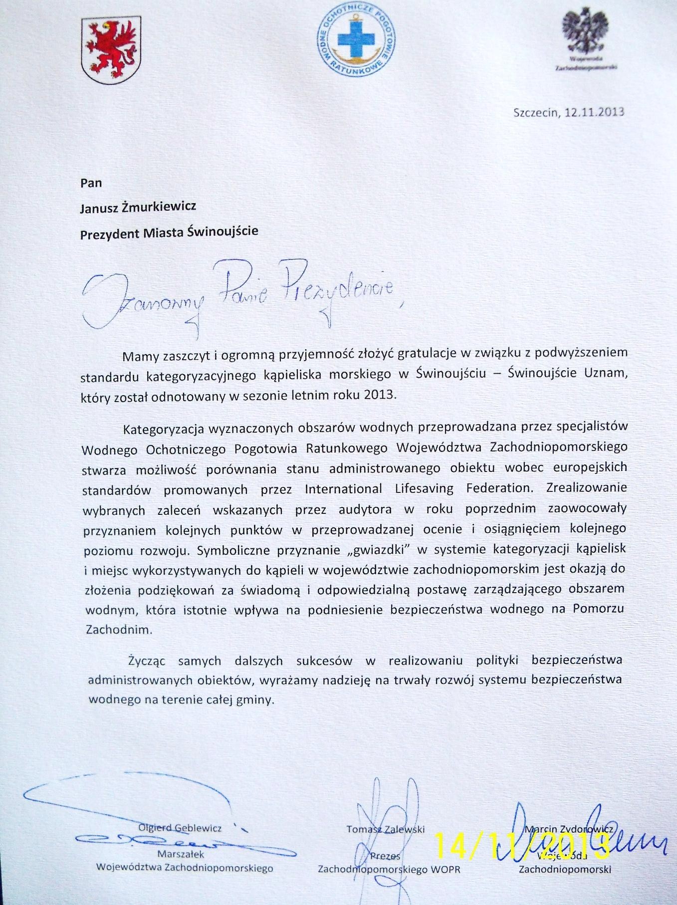 Warto przypomnieć, że świnoujskie kąpielisko jako jedyne w Polsce już po raz ósmy z rzędu otrzymało w tym roku także inne, bardzo cenione międzynarodowe wyróżnienie przyznawane miedzy innymi także za wysoki poziom bezpieczeństwa, czyli Błękitną Flagę. Wygrywa również lub jest w ścisłej czołówce wielu ogólnopolskich rankingów.