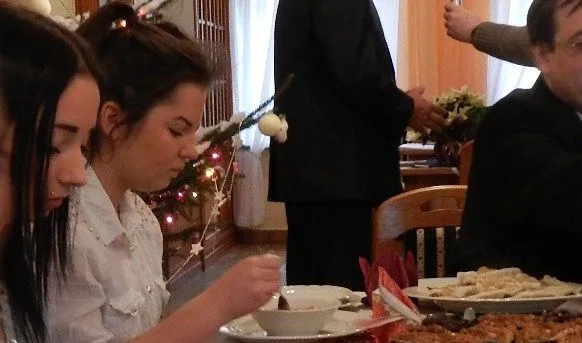 Jak na bożonarodzeniowe spotkanie, na stole był barszcz z uszkami, pierogi z kapustą i grzybami, śledzie i ciasta.