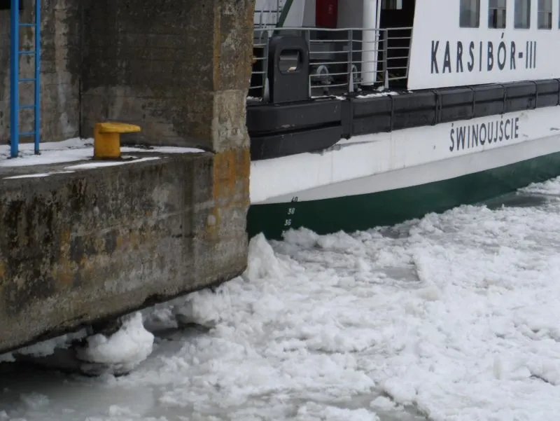 - Rano okazało się, że „Karsibór III”, który w nocy nie pływał, z powodu lodu nie może odbić od nabrzeża – mówi dyrektor Żeglugi Świnoujskiej Jerzy Barczak. – Jestem już po rozmowie z Kapitanem Portu, który obiecał wysłać na przeprawę holownik, który spróbuje skruszyć masy lodu.