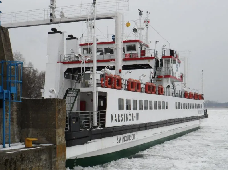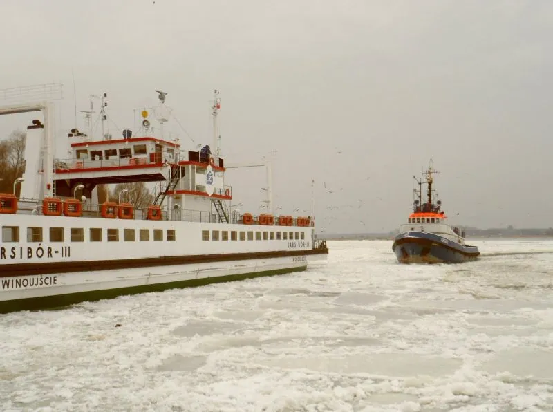 Kra poważnie utrudnia kursowanie promów na przeprawie promowej „Centrum”. Jedyny prom, który w tej chwili kursuje „Karsibór II” ma kłopoty z dobiciem do przystani na lewobrzeżu, a kolejny „Karsibór III” z powodu lodu nie może odbić od nabrzeża. Wiatr wiejący z południa naniósł masy lodu z Zalewu Szczecińskiego. Sytuację pogorszył jeszcze mały ruch statków na torze wodnym, które automatycznie udrożniały przejście. Zobacz zdjęcia.