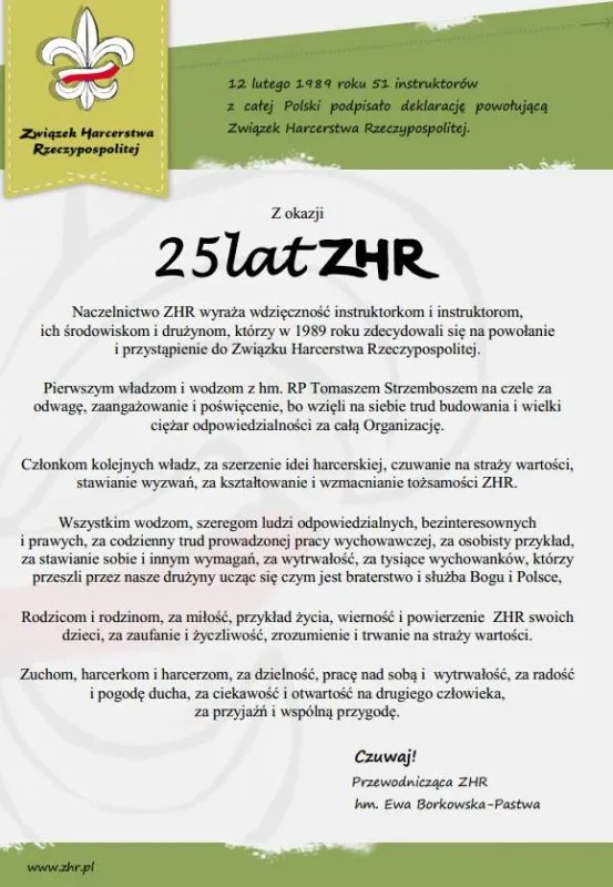 Wczoraj minęło 25 lat jak powstała nasza organizacja. 12 lutego 1989 roku w podziemiach kościoła św. Andrzeja Apostoła na Chłodnej w Warszawie spotkało się 51 przedstawicieli „niepokornych i niezależnych” środowisk harcerskich.