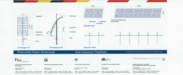 Oprócz dwóch prototypowych pergoli solarnych, po stronie niemieckiej posadowionych zostanie pięć solarów przypominających swoim kształtem żagle. Ich maszty będą wysokie na 10 m.