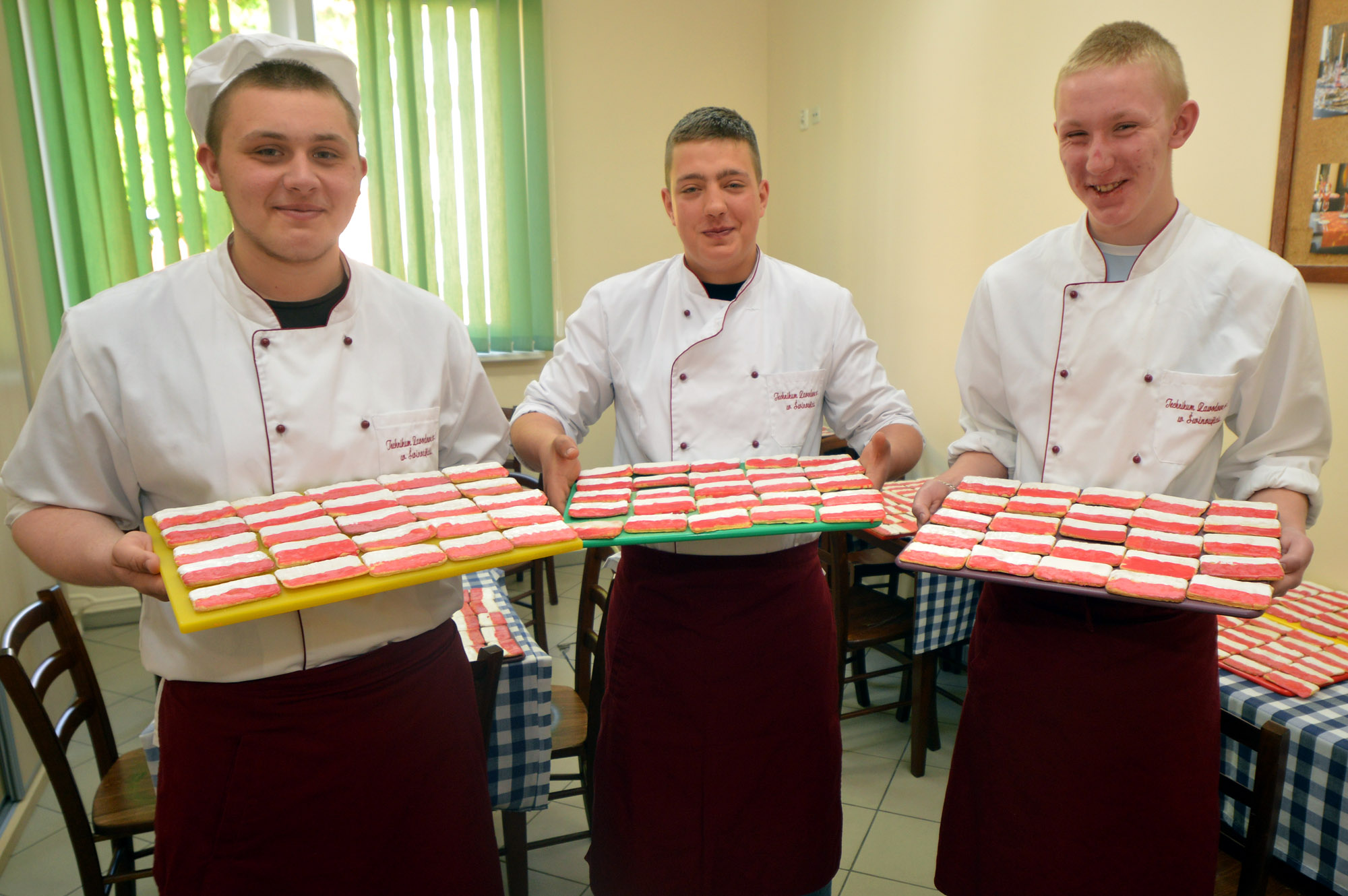 Najbliższy piątek zapowiada się imponująco! Nie dość, że na latarnię morską zostanie wciągnięta największa flaga narodowa, to jeszcze uczniowie upiekli 400 biało-czerwonych ciasteczek. Wszystko z okazji Dnia Flagi Narodowej Rzeczypospolitej Polskiej. Aby osłodzić oczekiwanie na wciąganie ogromnej flagi narodowej na szczyt latarni morskiej w Świnoujściu, uczniowie z Technikum Żywienia przy ulicy Gdyńskiej postanowili upiec 400 ciasteczek. Łakocie są oczywiście w barwach narodowych – z wierzchu pokryte białym i czerwonym lukrem.